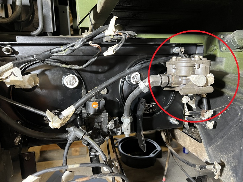 Donc sans air, le camion ne peut pas bouger. Lors du démarrage, la valve 4 voies assure que le remplissage des bouteilles de frein de service se fasse avant le circuit et la bouteille de frein de parc. C'est pour être sur que le chauffeur ne parte....sans freins.