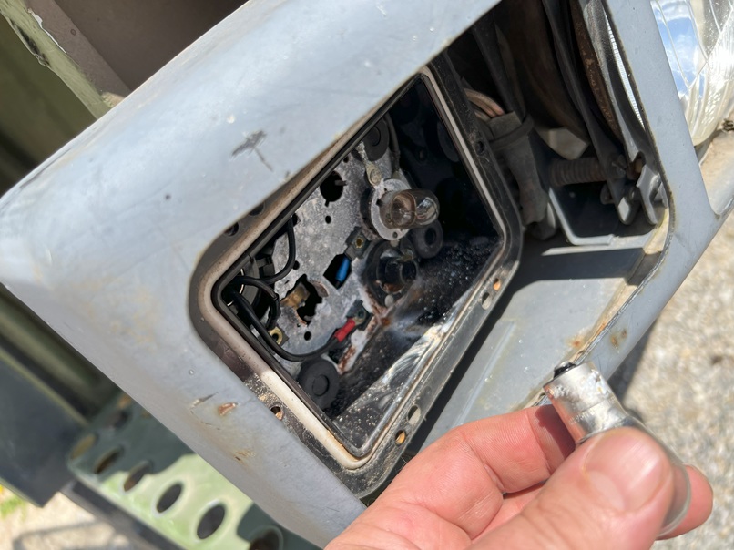 On enléve et on renquille les connecteurs et...c'est reparti. Ca clignote. Sauf à l'avant droit. Démontage. En plus de la platine bien oxydée, l'ampoule est morte.