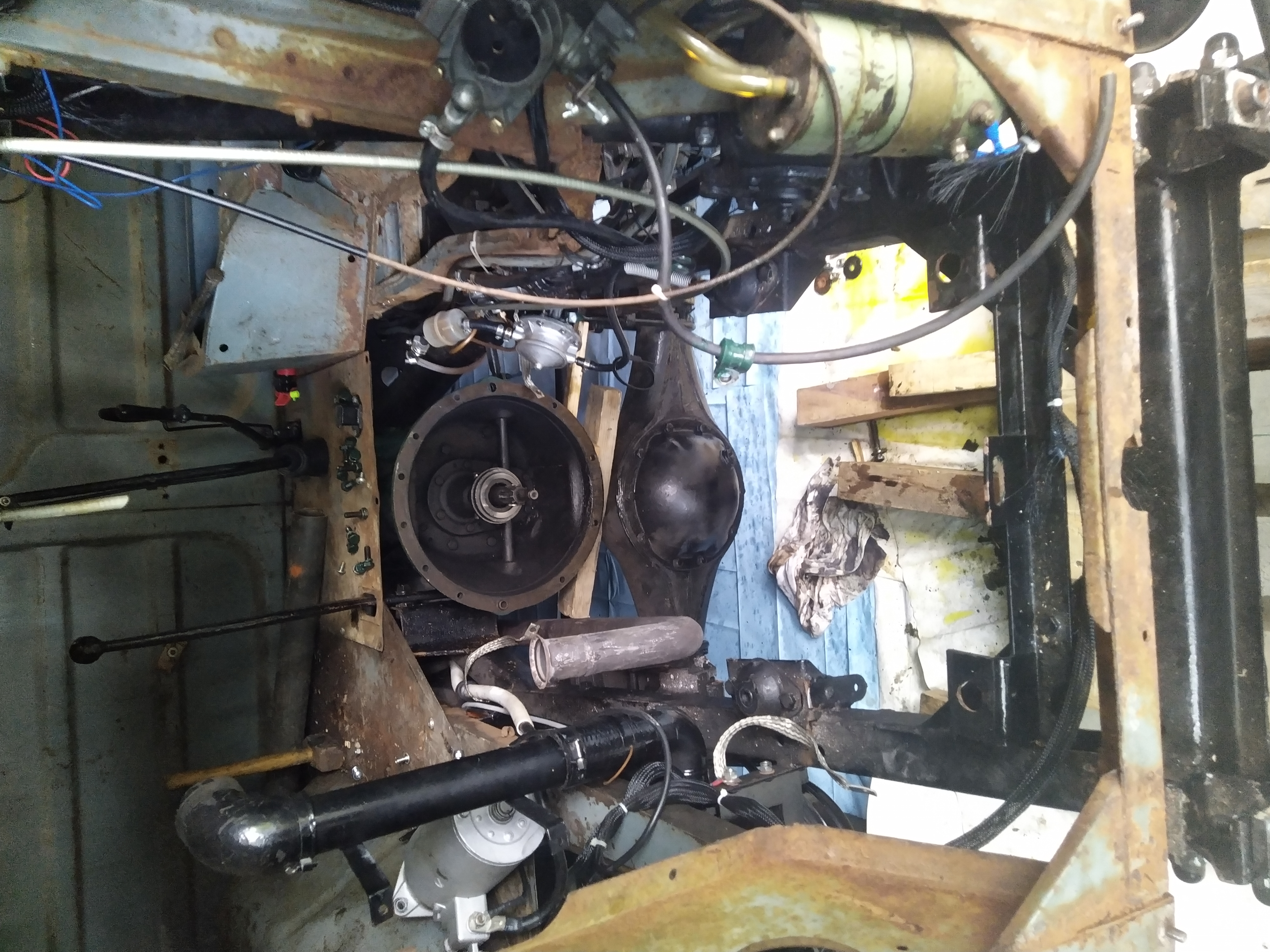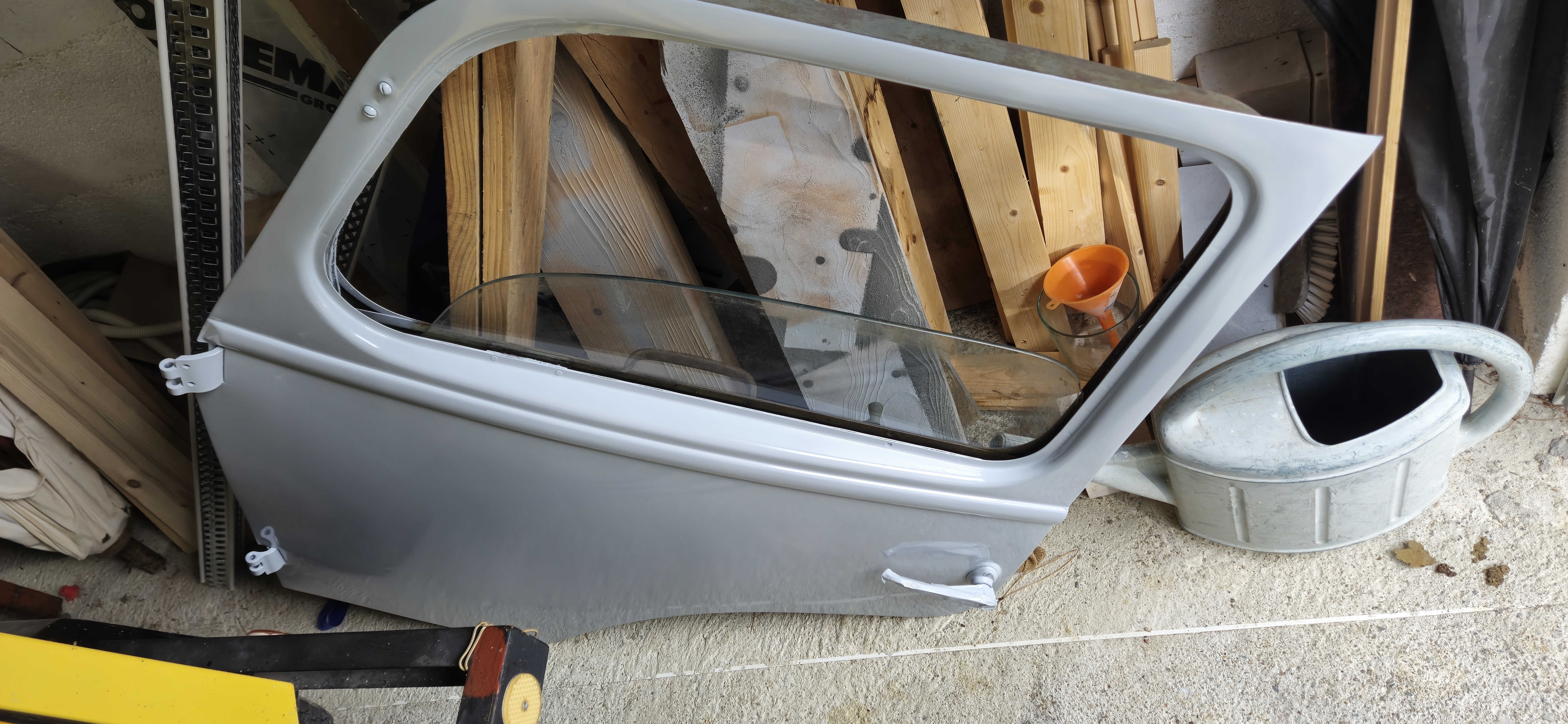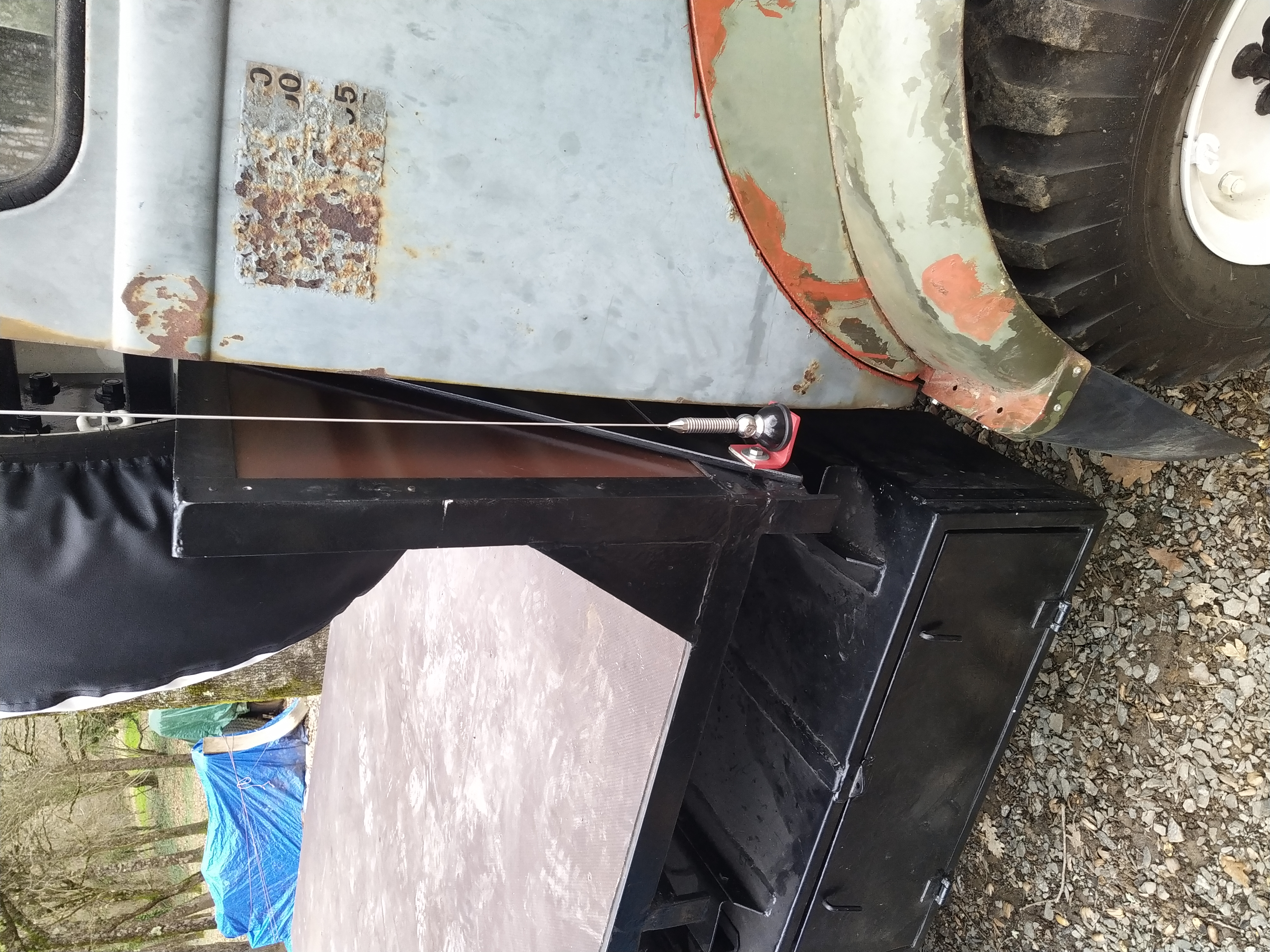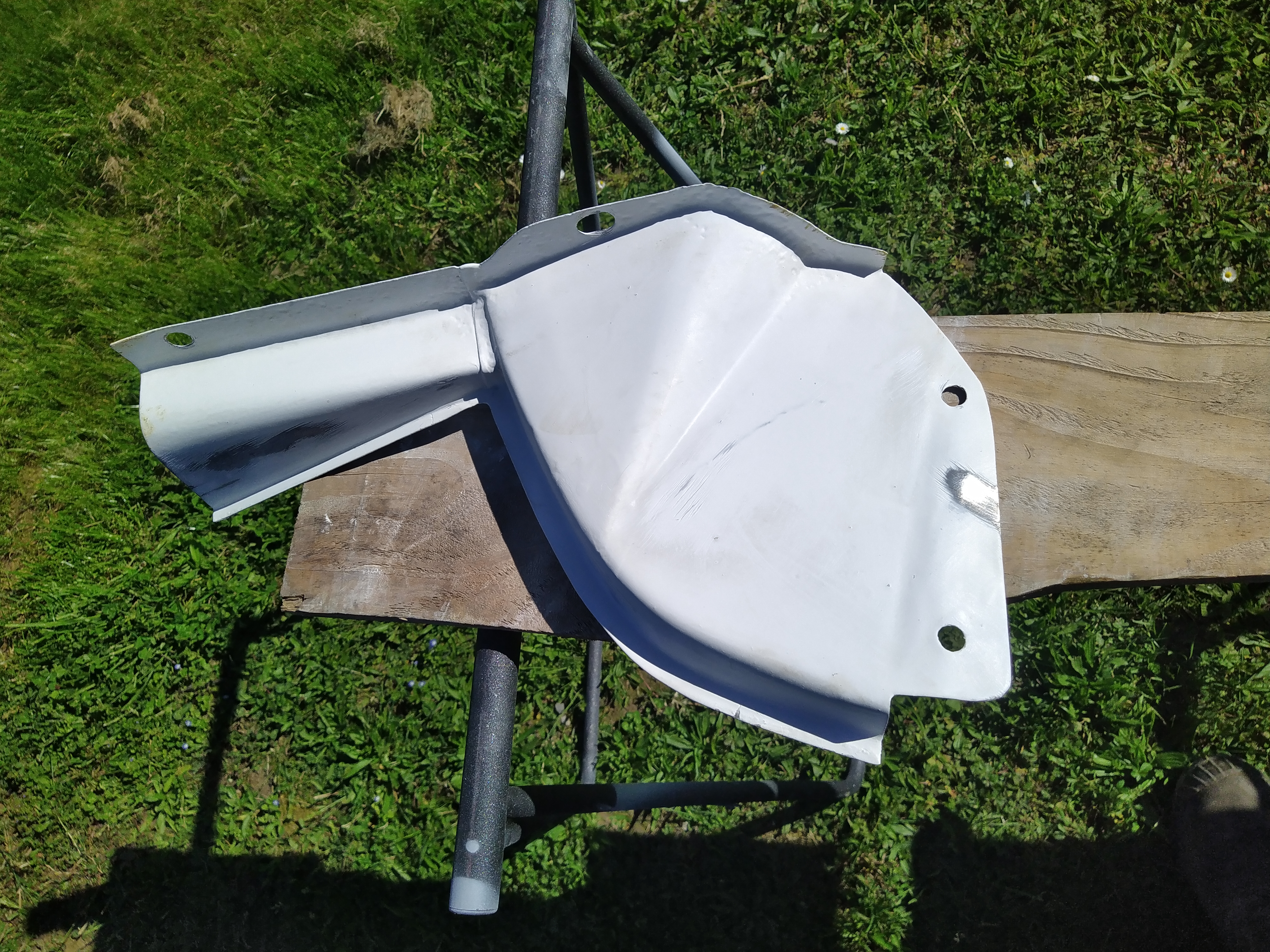 Sablage des toles du plancher, cerclage de phare , support moteur essuie glace , puis peinture à l'appret