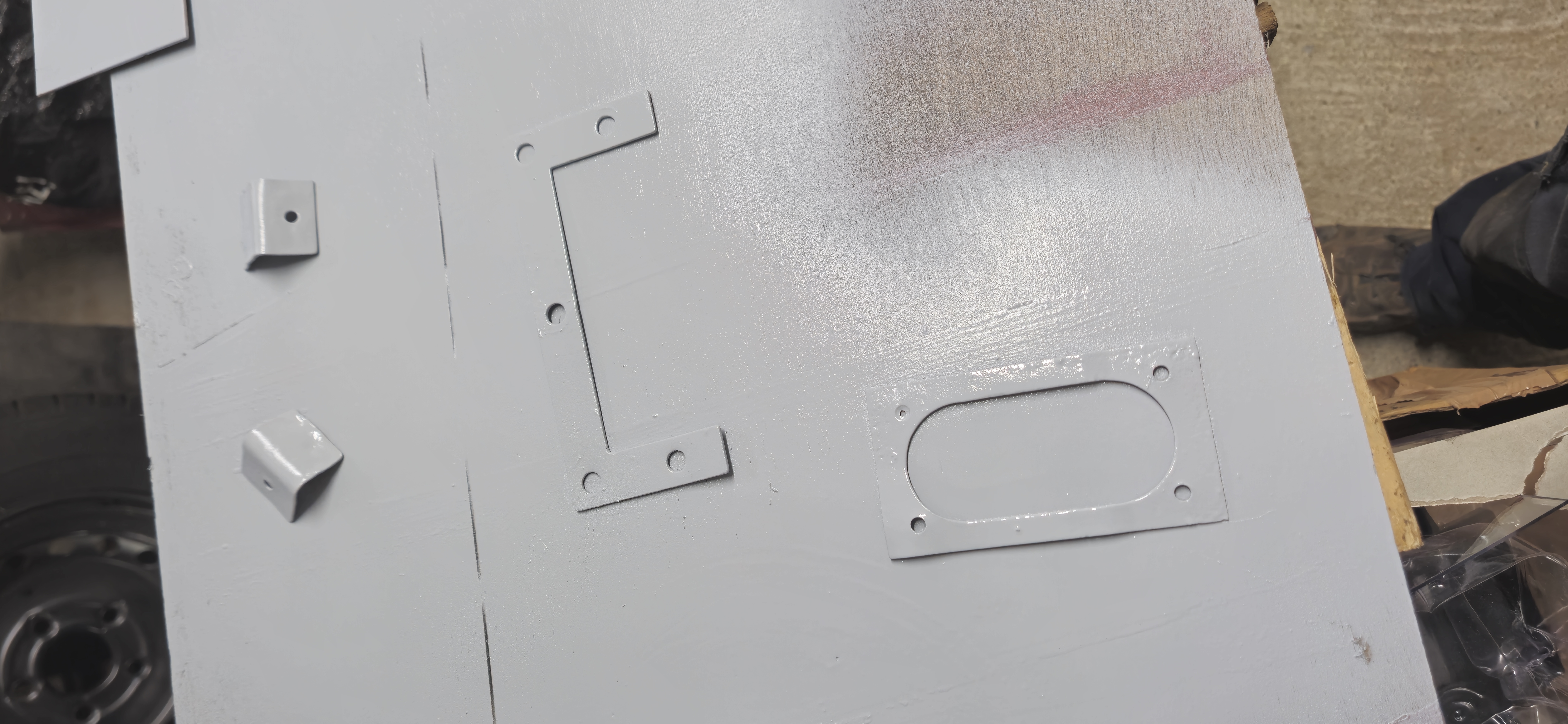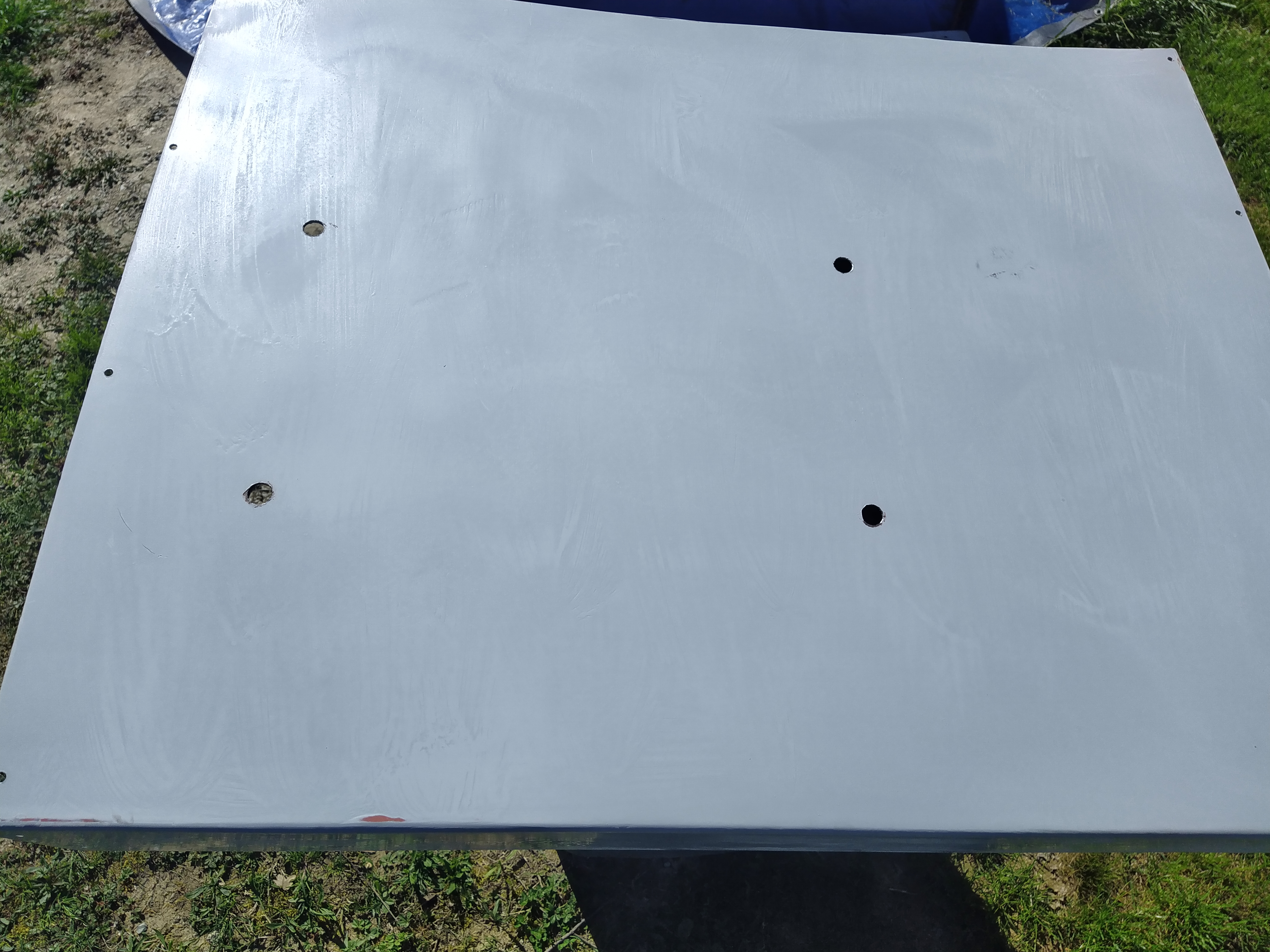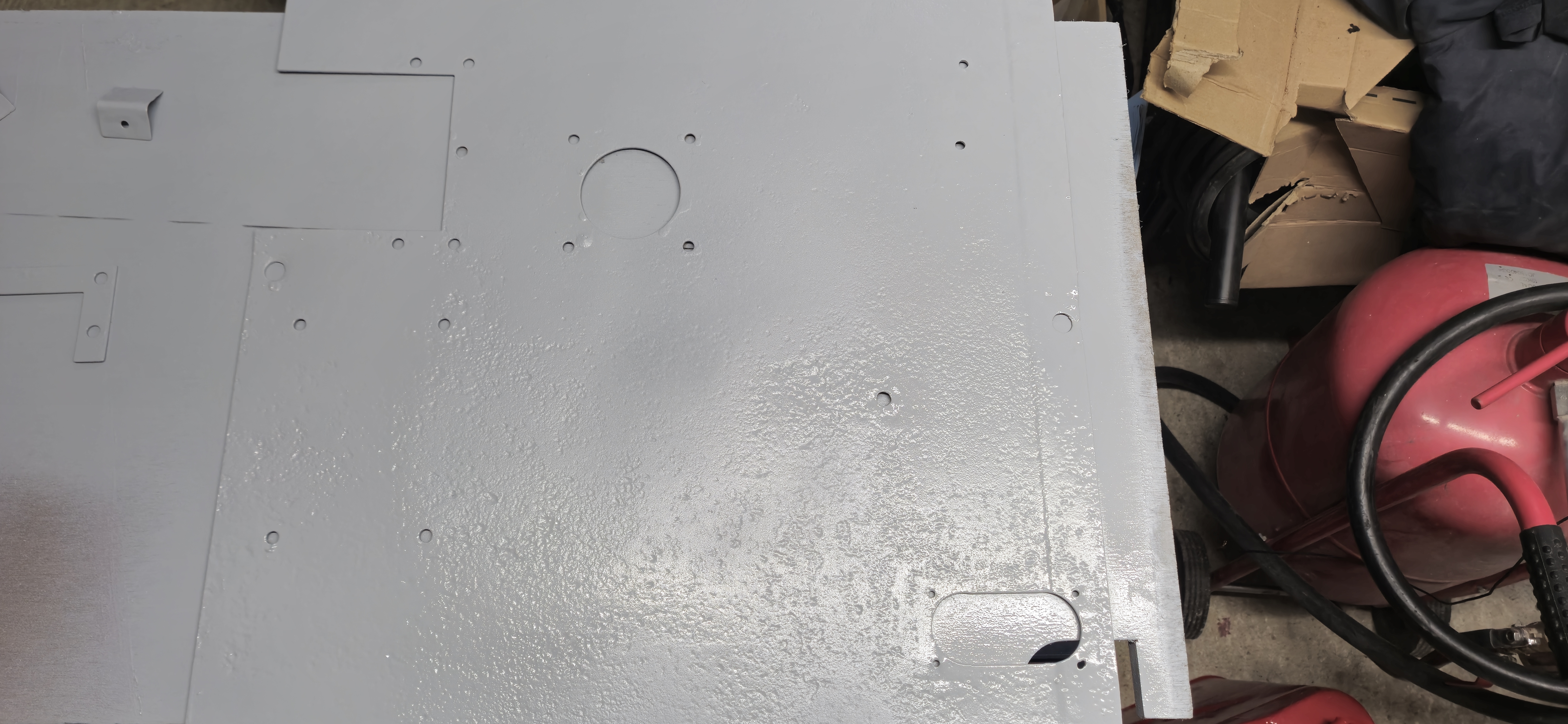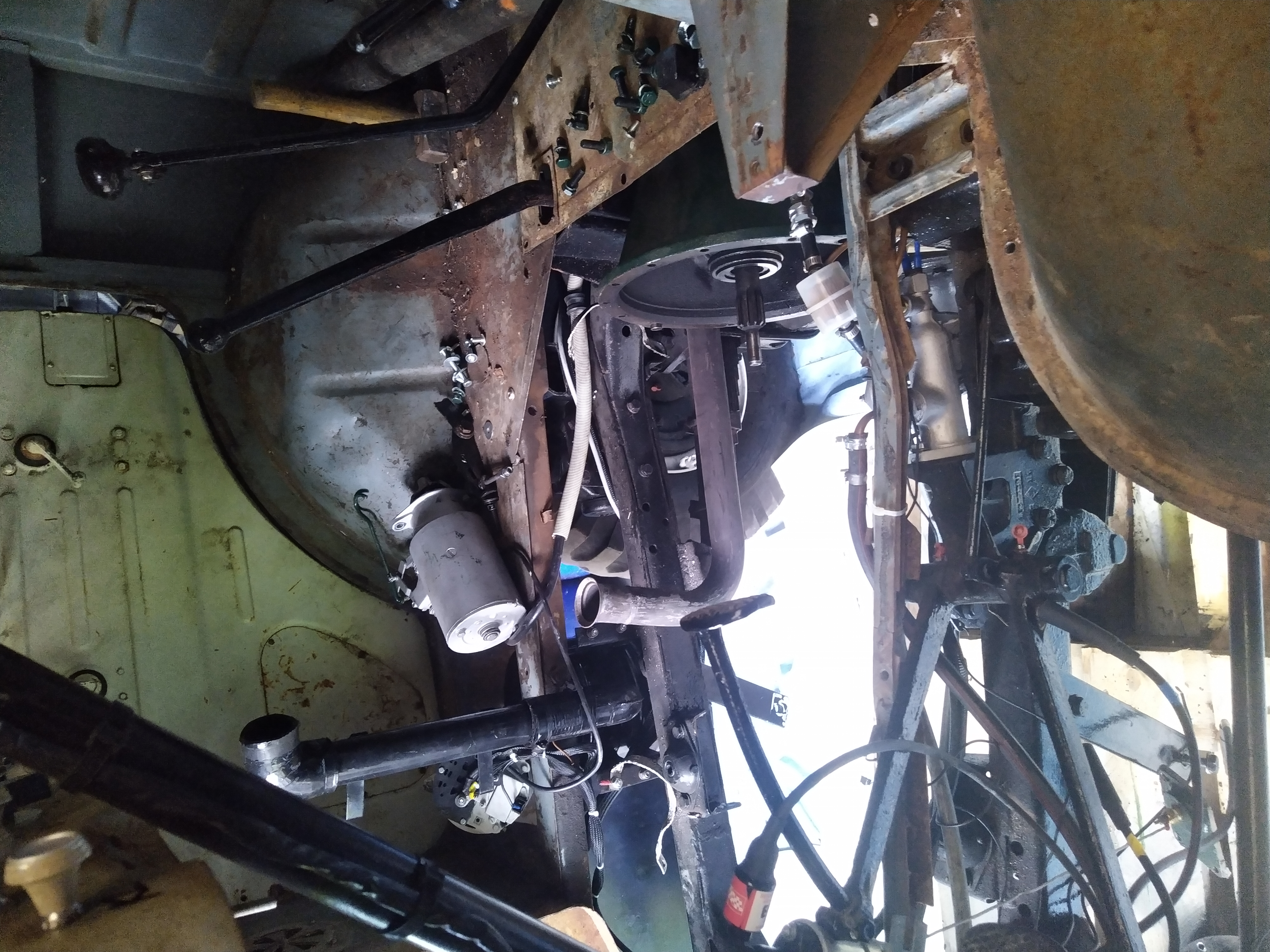 Sablage des toles du plancher, cerclage de phare , support moteur essuie glace , puis peinture à l'appret