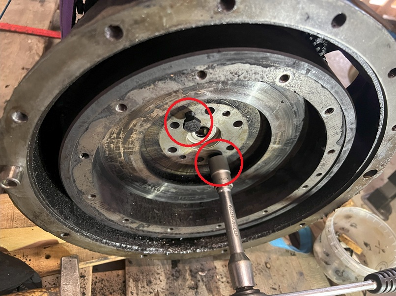 Dépose de la pompe à huile avec trois points de fixation et 5 vis et un écrou.