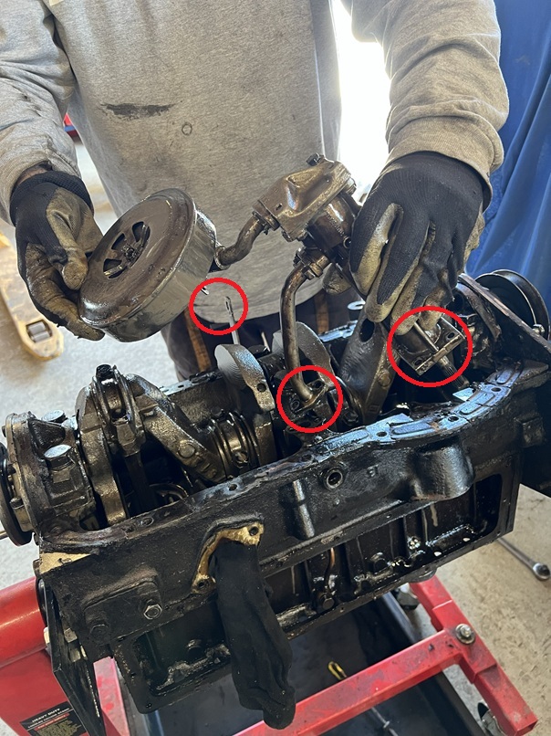 Dépose du freinage des chapeaux de bielle et dépose des sous-ensembles bielle piston chemise.