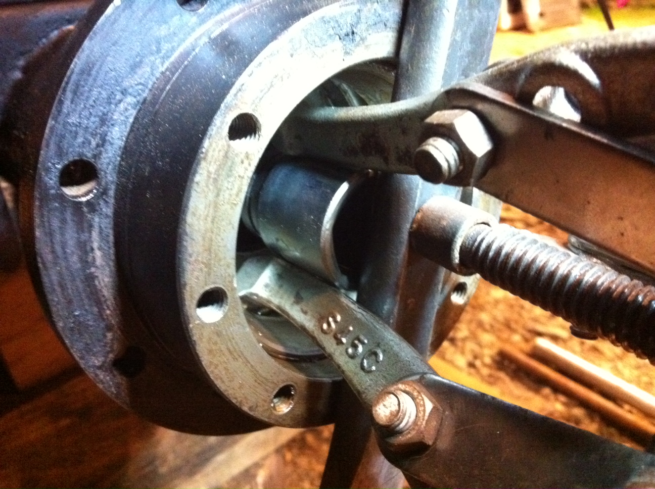 A noter qu'après démontage du premier tambour, j'ai du remplacer la pièce ronde centrale (2 disques d'épaisseur 7mm supperposés ) car elle avait plié