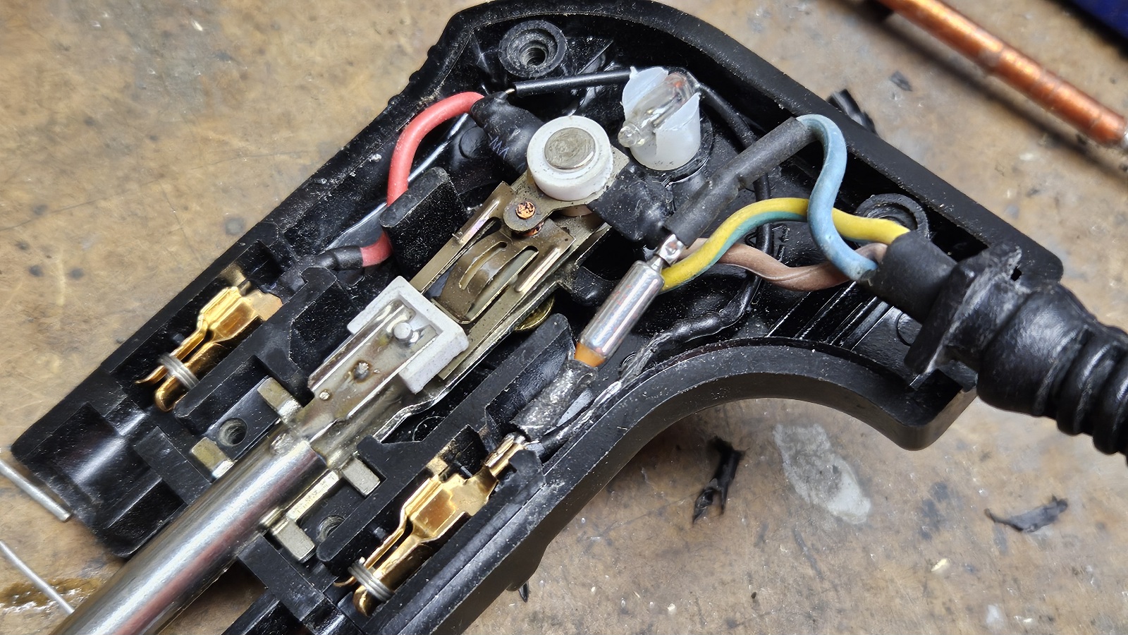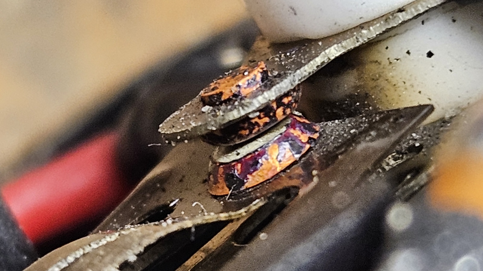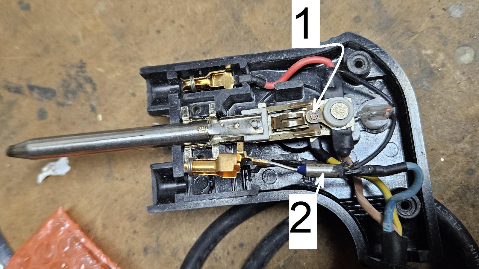 1. les contacts du thermostat (bilame) ont grillé et ont provoqué une surchauffe de l'ensemble.