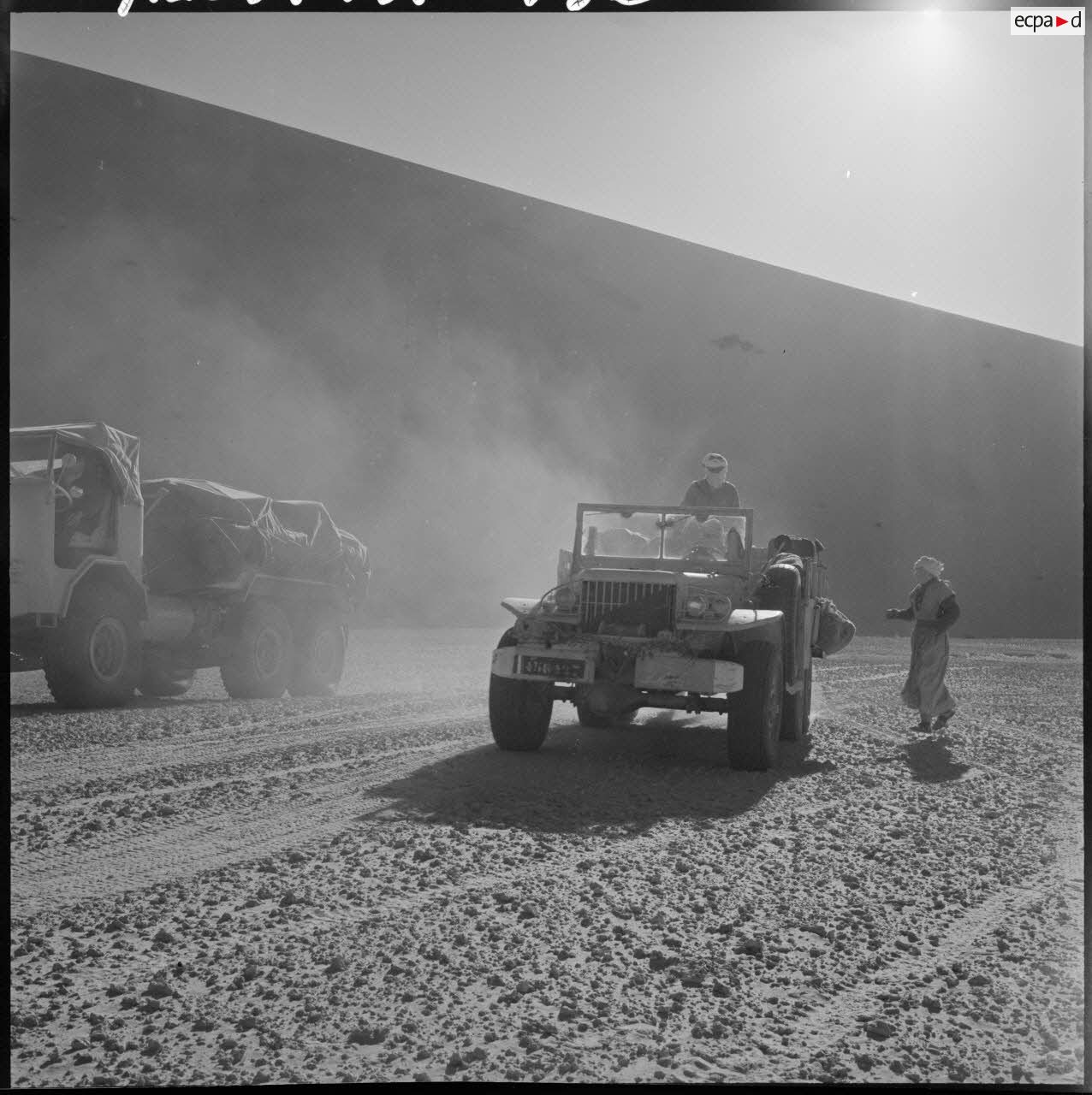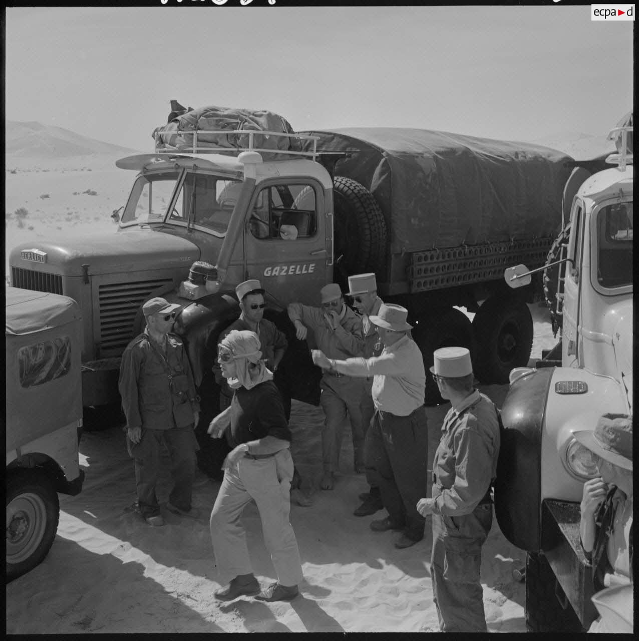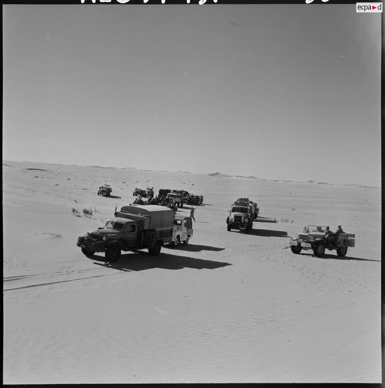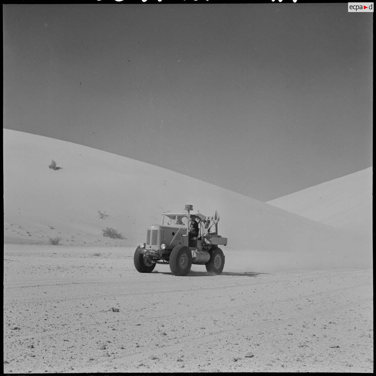 Une colonne de 25 véhicules lourds et légers traverse pour la première fois le Grand Erg oriental par la région des plus grandes dunes (Algérie).Description du reportagePartie de Fort Lallemand le 12 mars 1959 au soir, une colonne de 25 véhicules lourds et légers traverse pour la première fois le Grand Erg oriental par la région des plus grandes dunes et arrive le 18 mars 1959 au soir à Fort Thiriet, petit poste frontalier à quelques kilomètres de Ghadames.