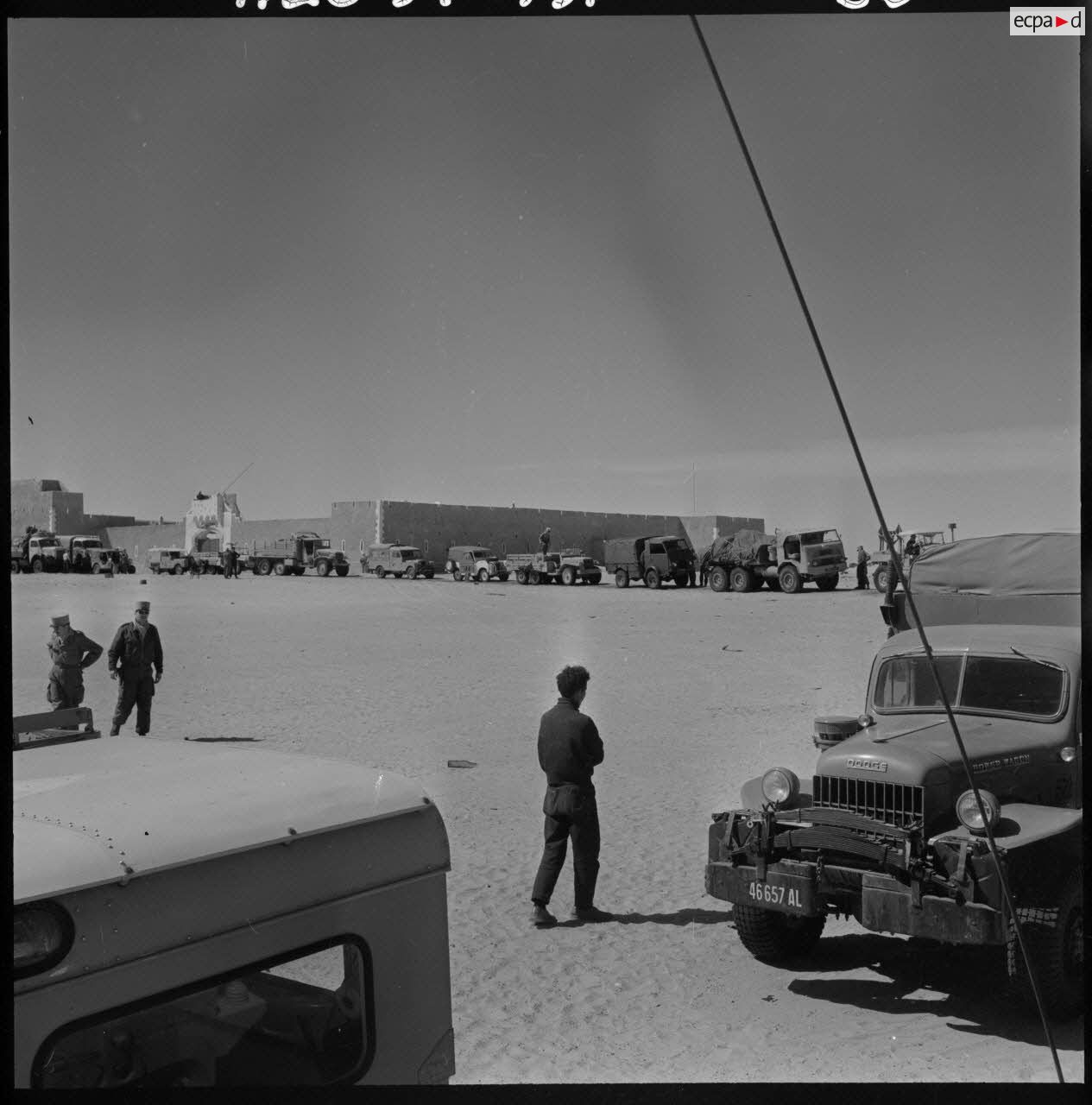 Grand Erg oriental. Fort Lallemand. La colonne des 25 véhicules est formée et prête à attaquer les sables du grand Erg.