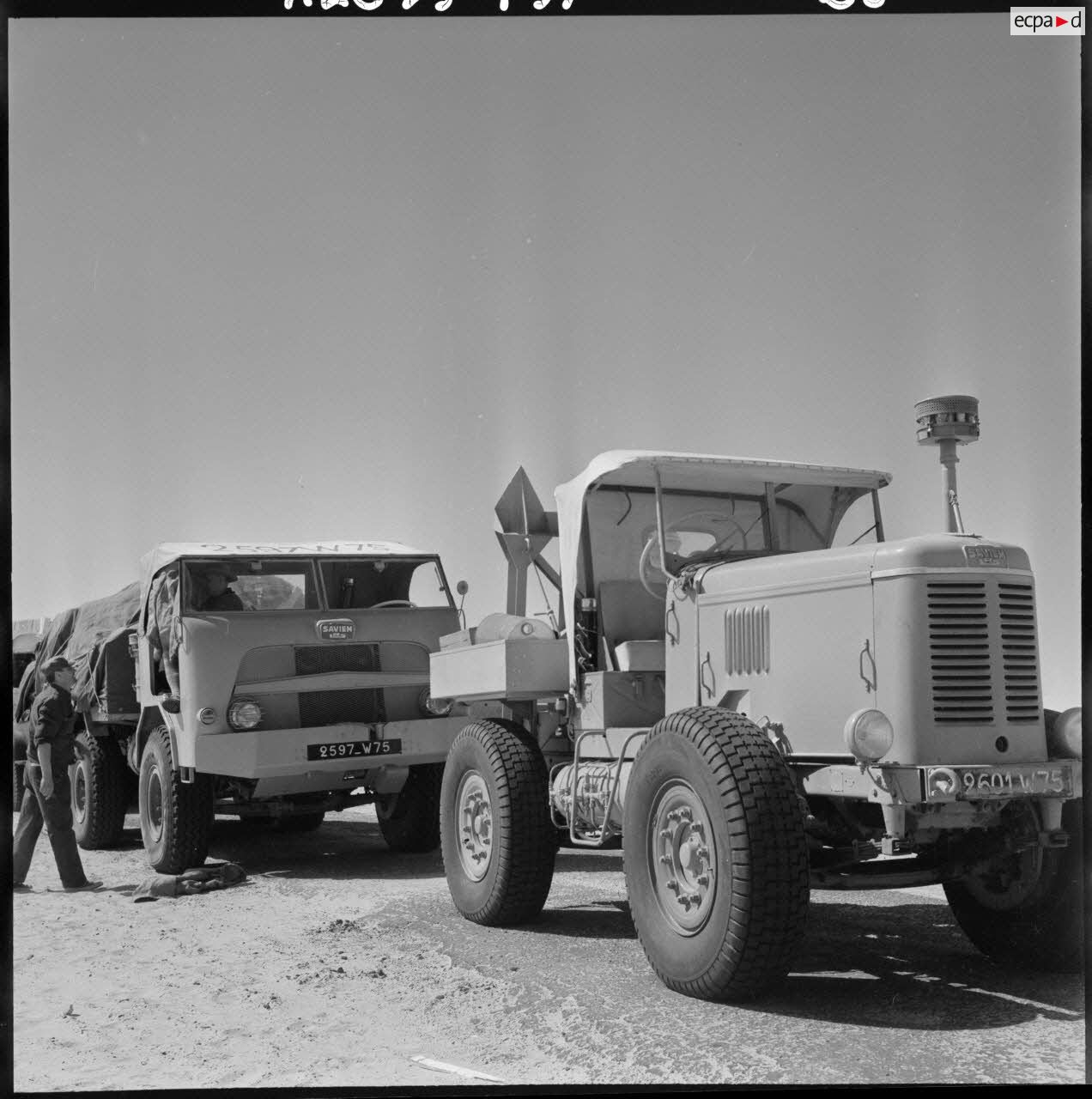 Grand Erg oriental. Un camion 6x6 et un tracteur de la SAVIEM LRS.