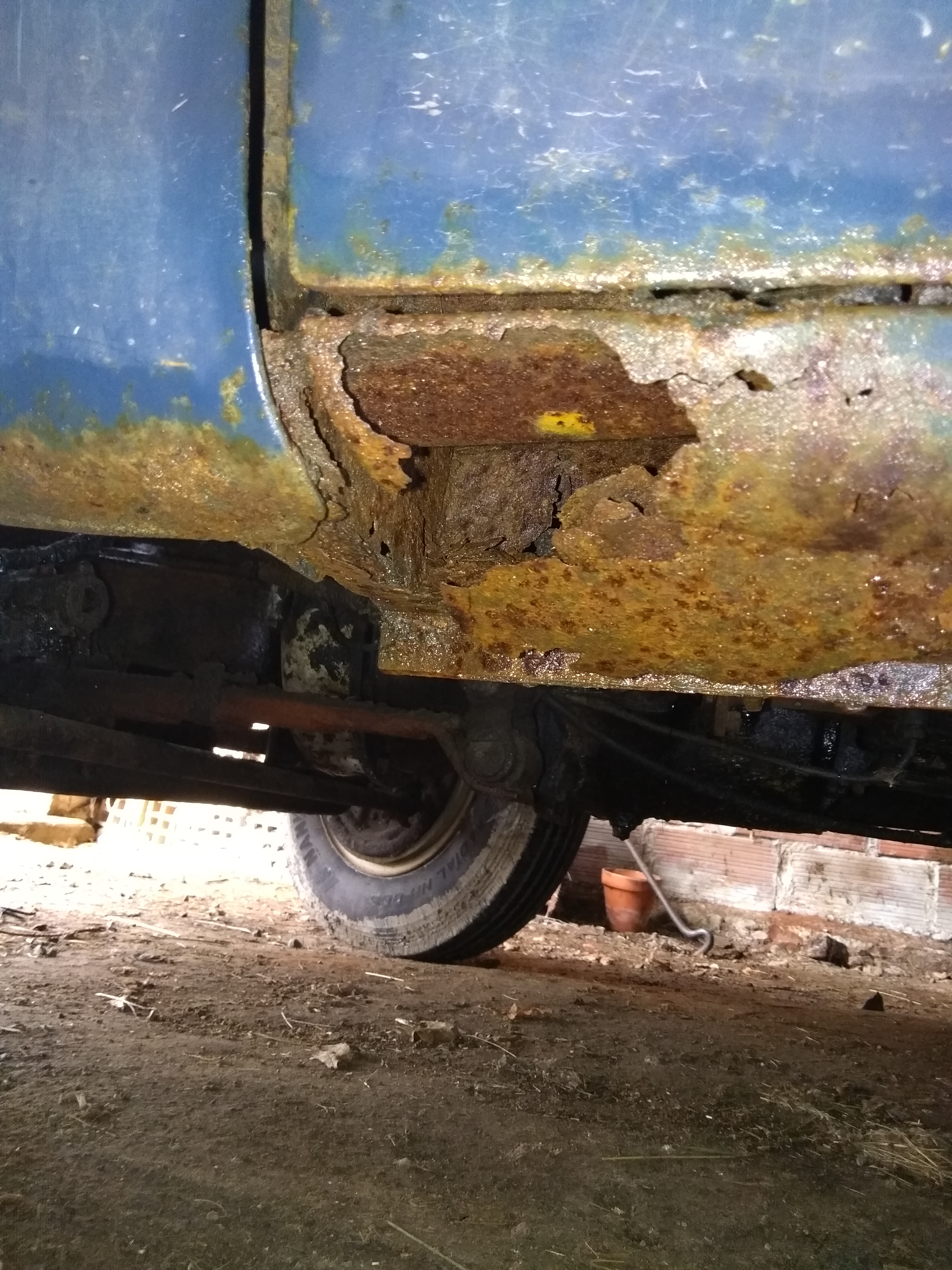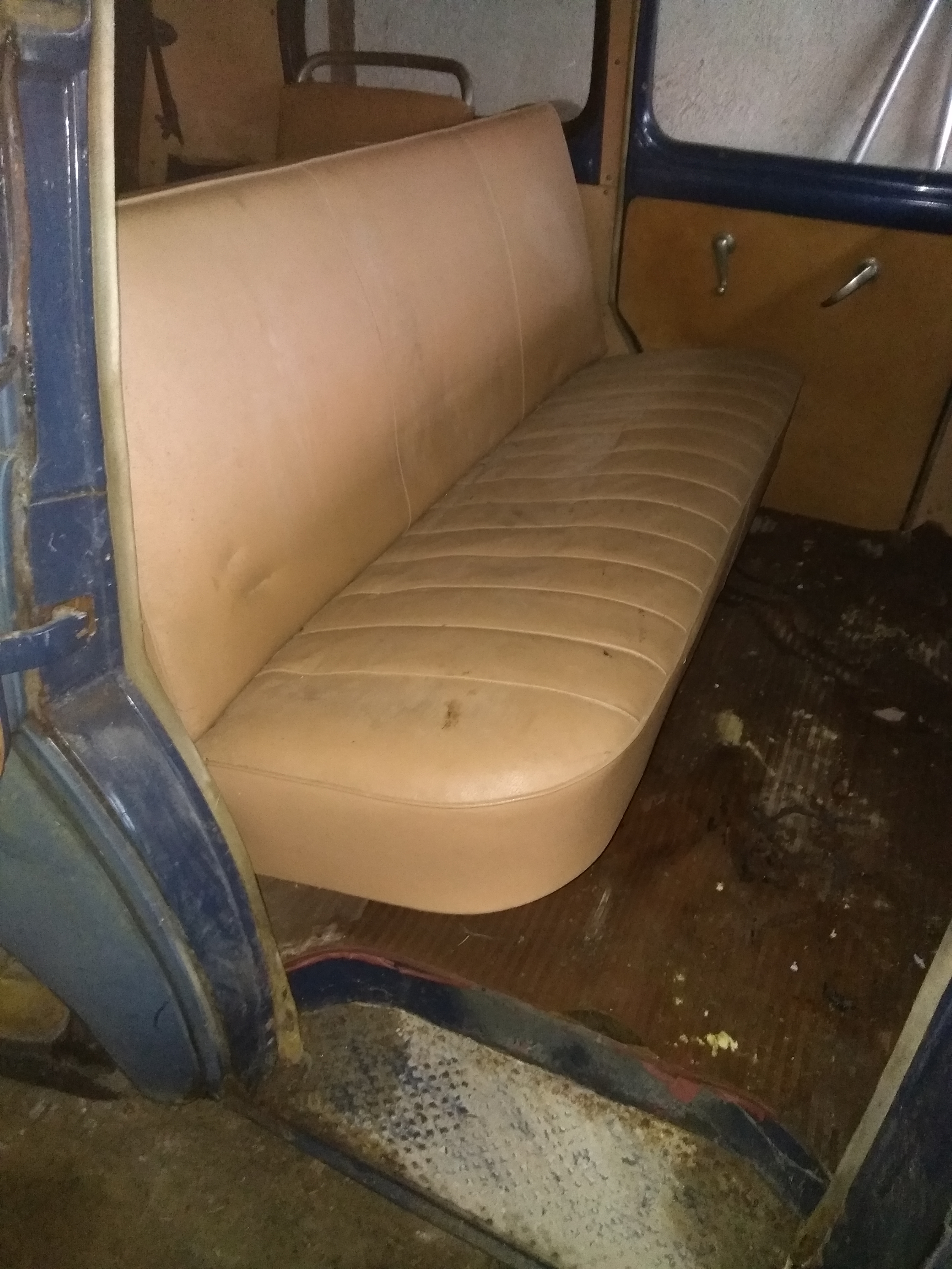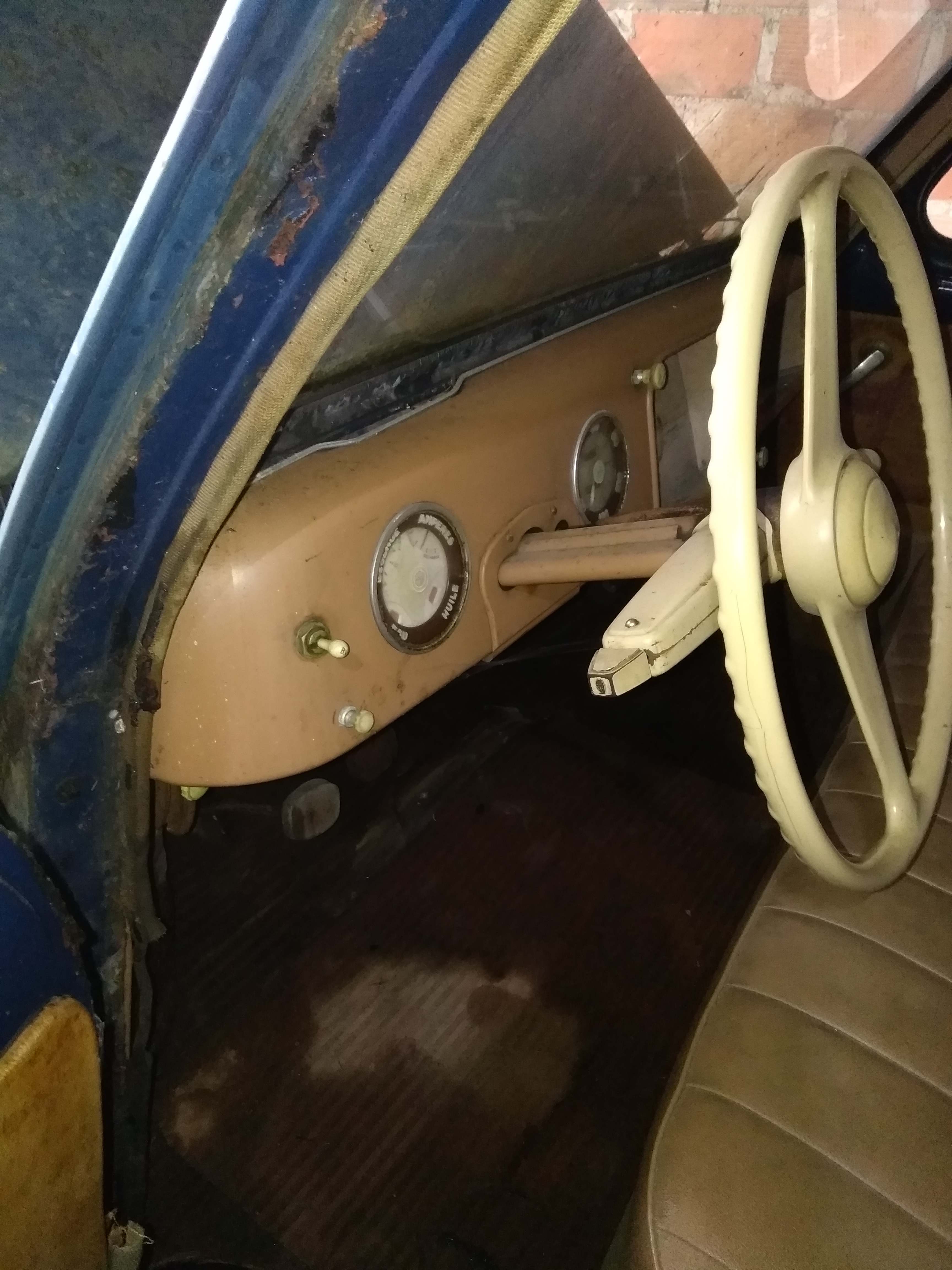 Voici d'autre photos plus détaillées.Un seul point noir (enfin 2 ) les pieds de porte AV ,rouille perforante ,le truc habituel sur une prairie .Mais facilement réparable . Pas comme sur le fourgon . Le châssis est certe rouillé mais juste en surface,le plancher est en bon état.Il y a que le hayon AR que je n'ai pas réussi à ouvrir ,j'ai mis du dégripant ,on verra ça plus tard. Ah une chose j'ai l'option chauffage dans la voiture !