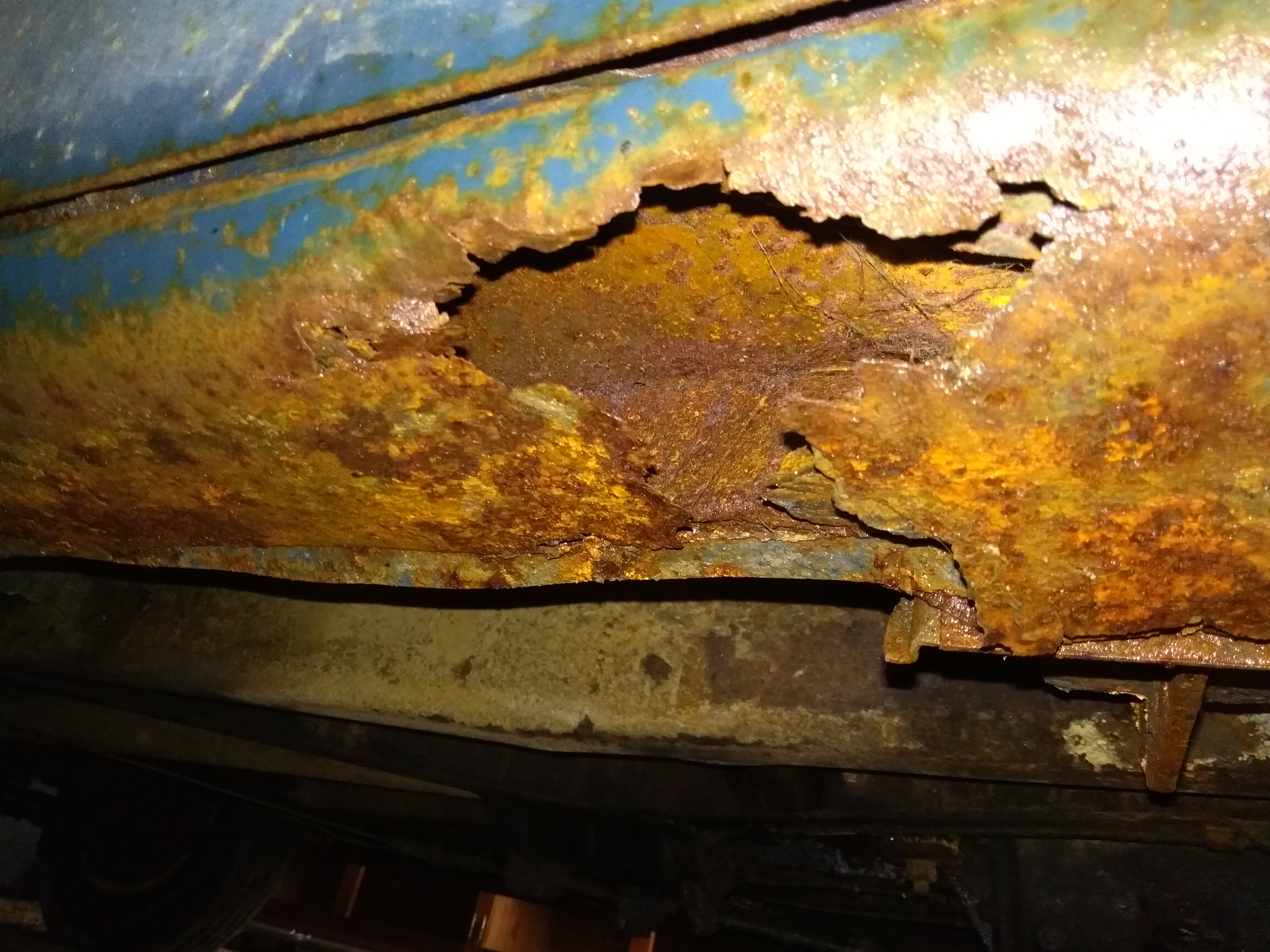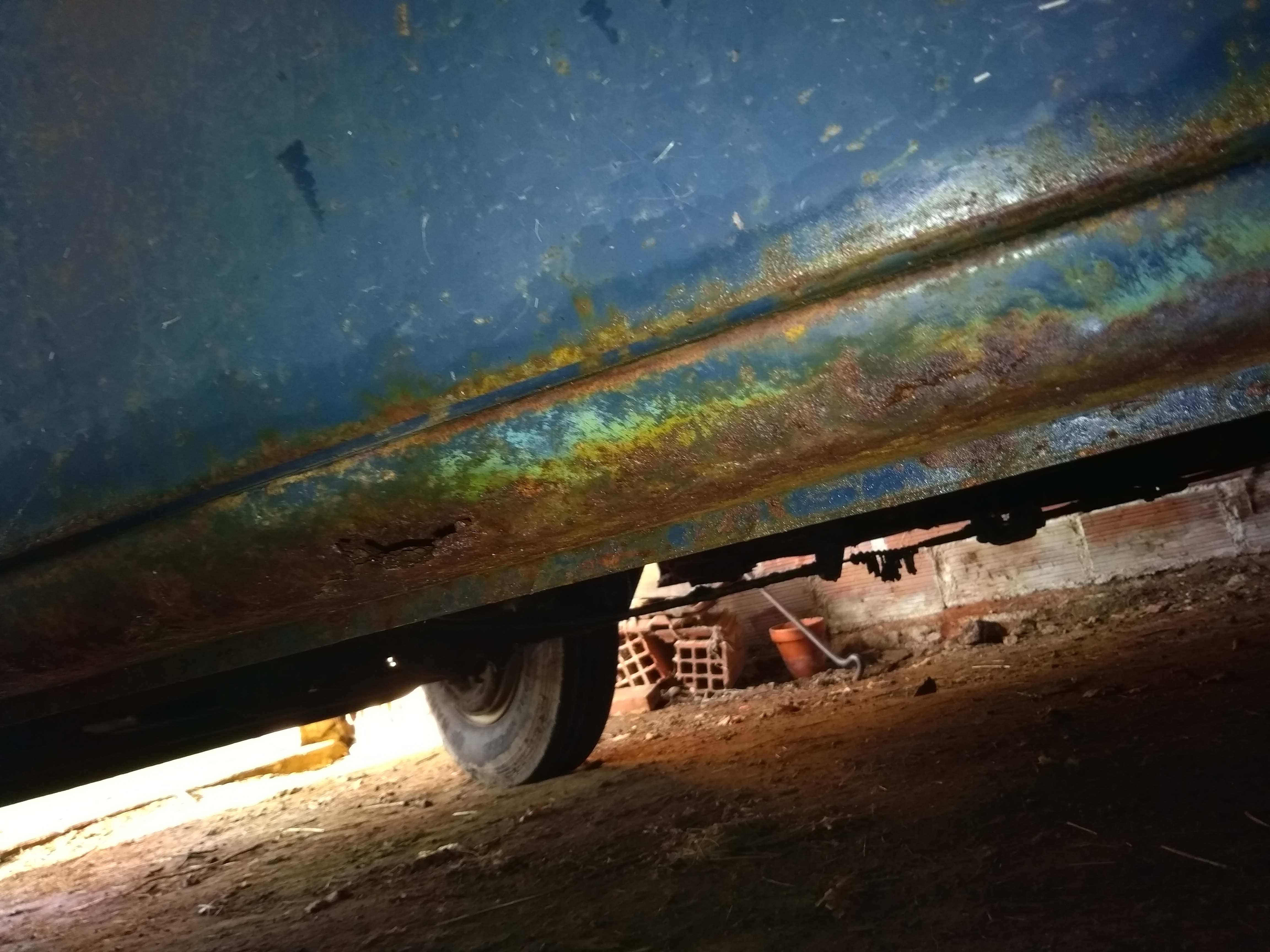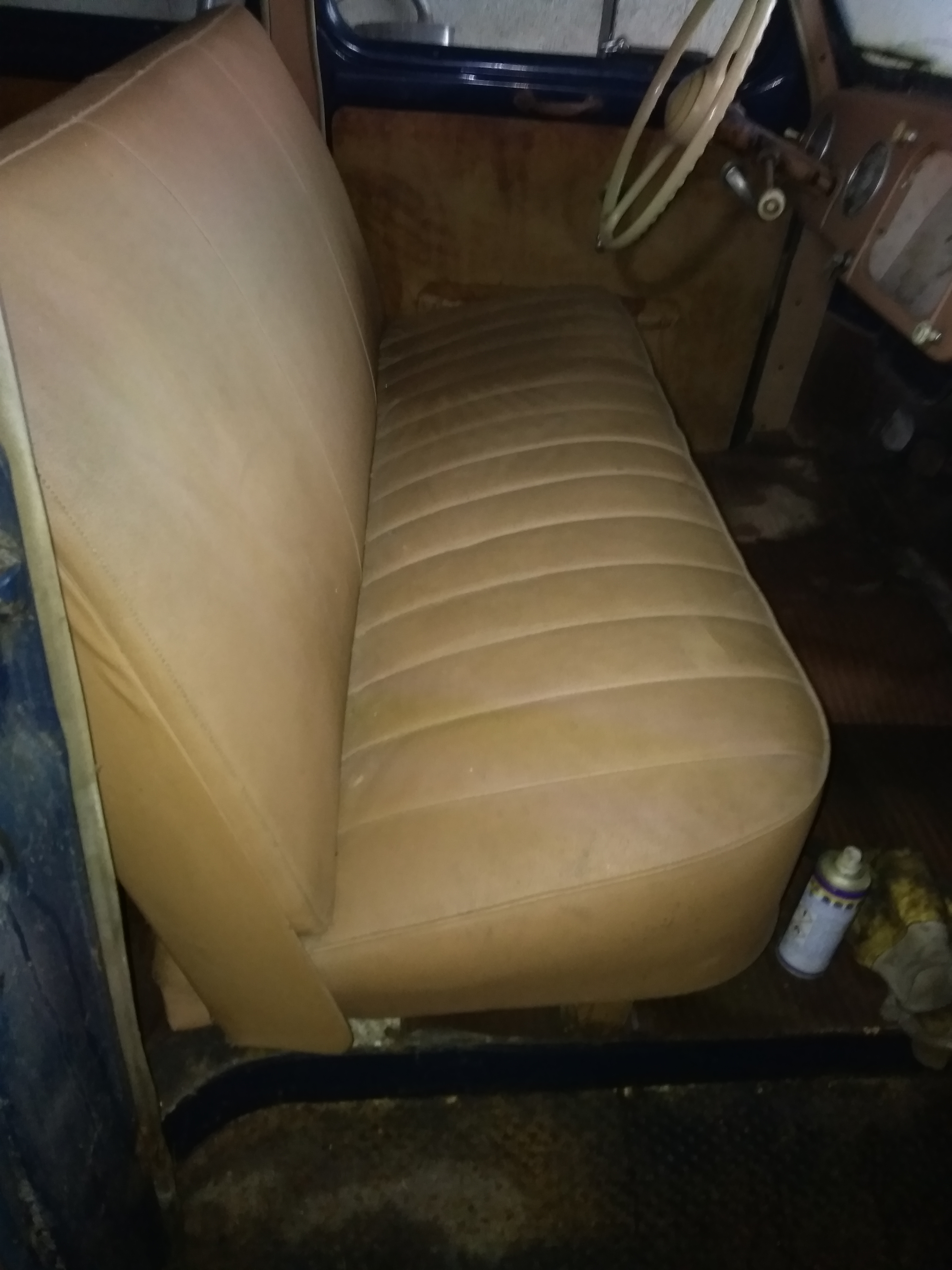 Voici d'autre photos plus détaillées.Un seul point noir (enfin 2 ) les pieds de porte AV ,rouille perforante ,le truc habituel sur une prairie .Mais facilement réparable . Pas comme sur le fourgon . Le châssis est certe rouillé mais juste en surface,le plancher est en bon état.Il y a que le hayon AR que je n'ai pas réussi à ouvrir ,j'ai mis du dégripant ,on verra ça plus tard. Ah une chose j'ai l'option chauffage dans la voiture !