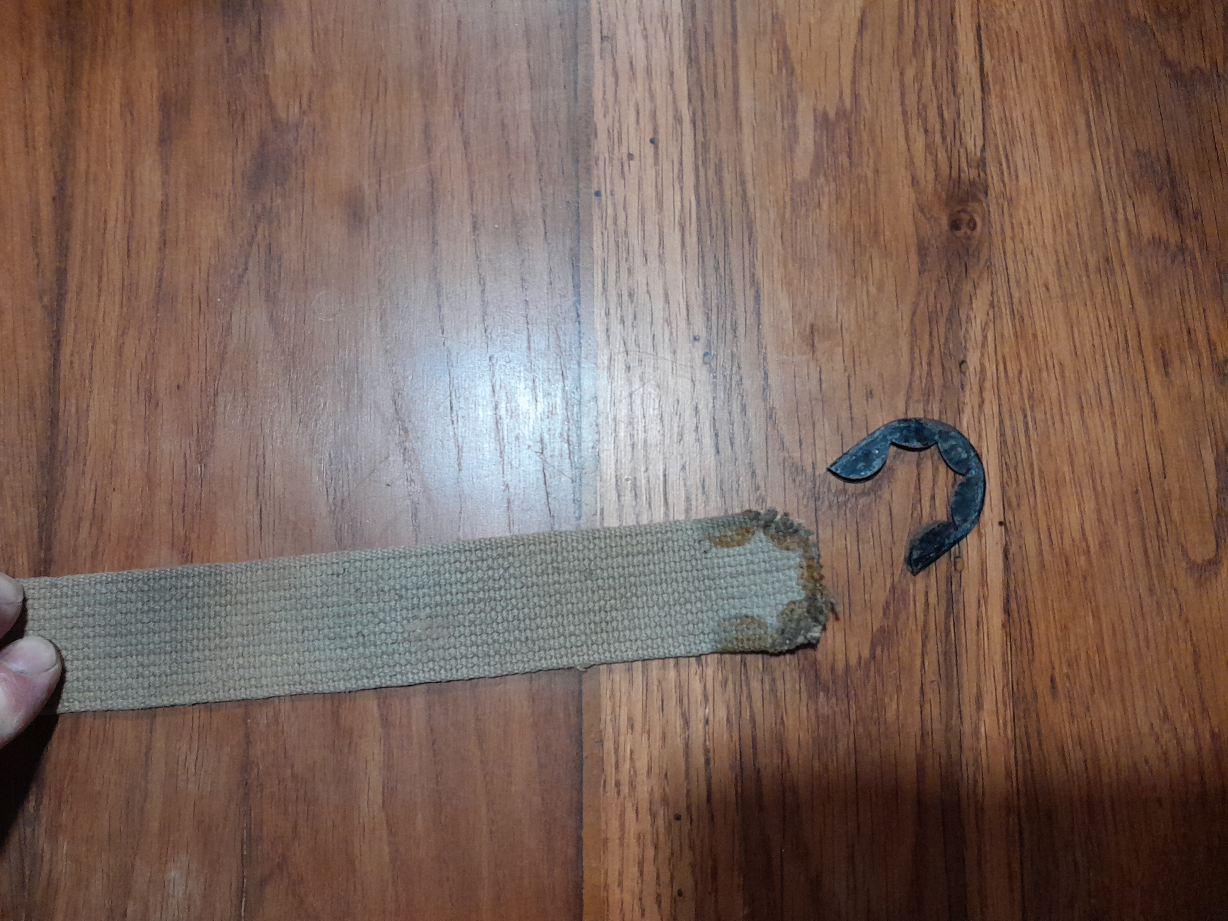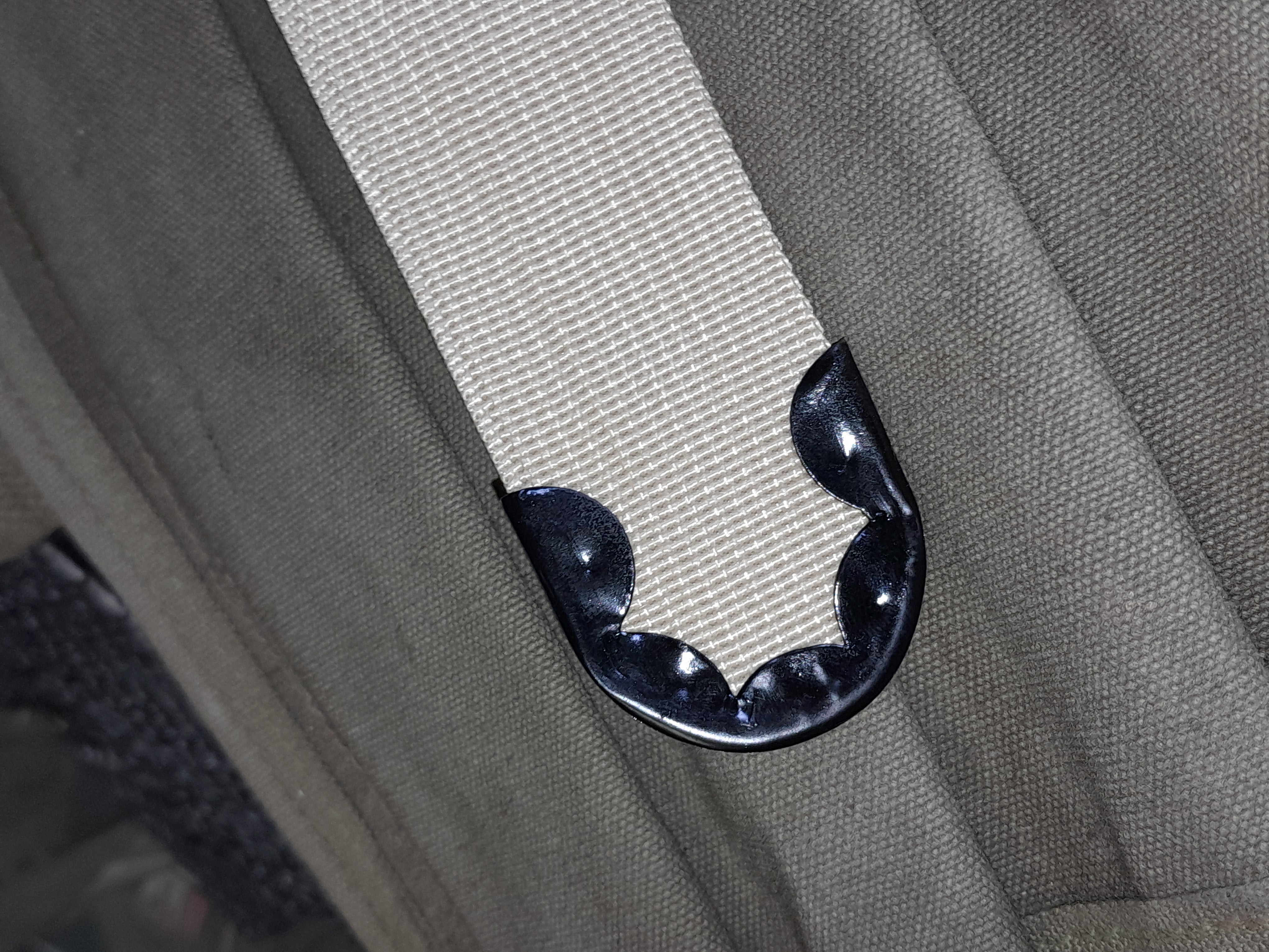 La fin de la sangle est finie par un arrêtoir métallique serti, qu'il est nécessaire de dessertir pour le remettre sur la nouvelle sangle
