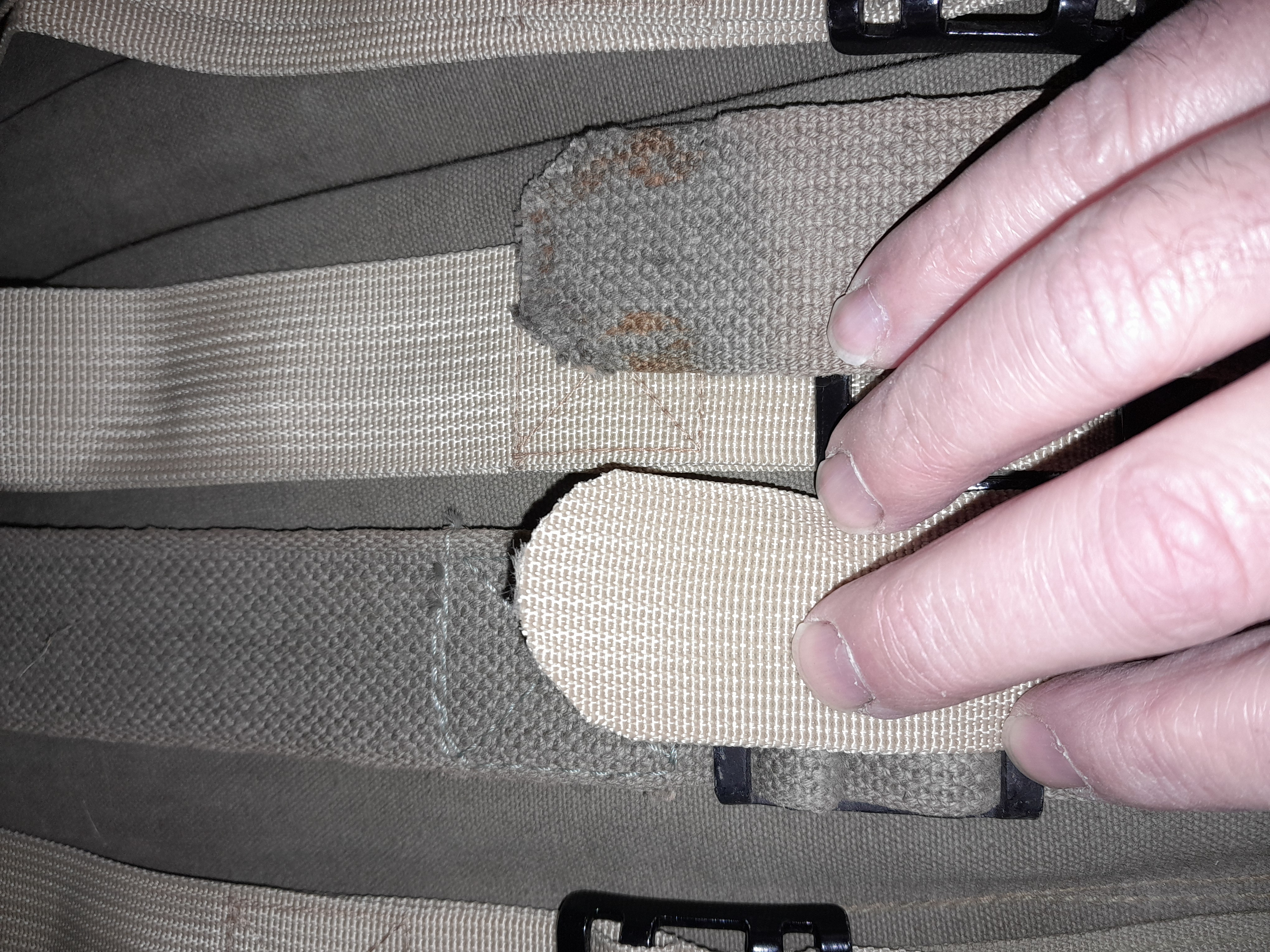 Une fois les sangles enlevées on peut commencer le démontage du passant dans la sangle en prenant soin de ne pas se tromper du montage