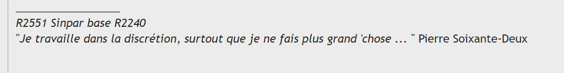 Je n'avais jamais vu que j'étais cité en permanence ... :-D Je ne me souviens même plus à quelle occasion j'ai dis çà ? :roll: :wink: