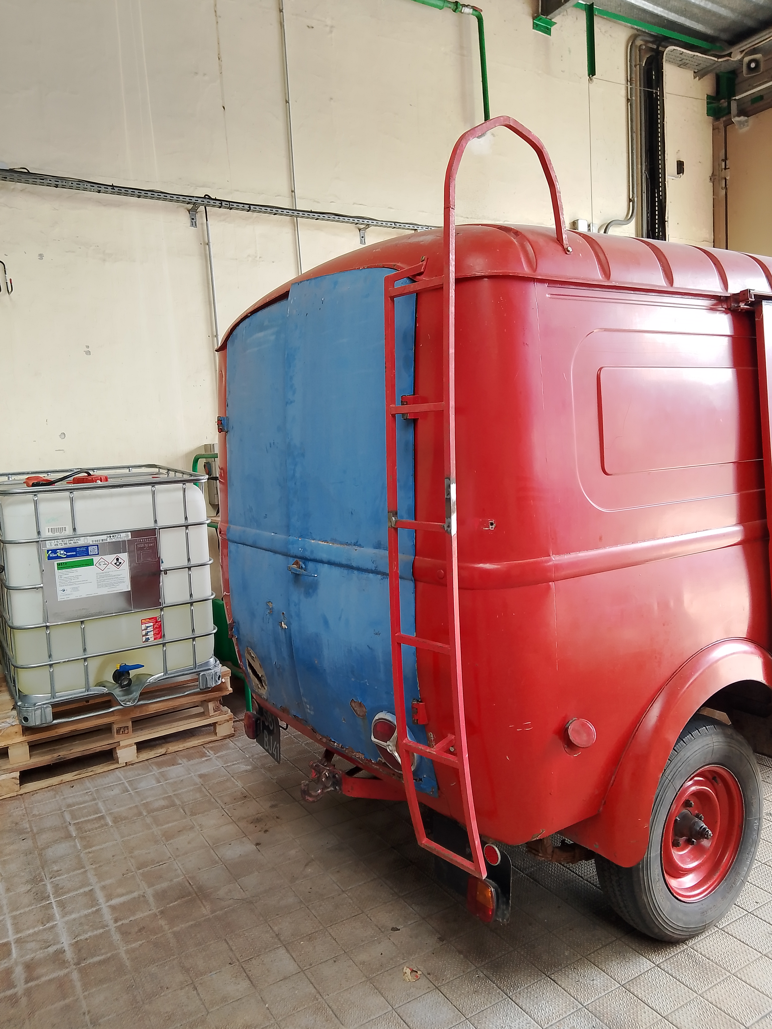 ) pour monter sur le toit pour accéder au support échelles , nous avons réussi à ressouder et rabouter des morceaux manquants , la voici remise à sa place ( conformément aux photos d'origine que nous avons trouvé)
