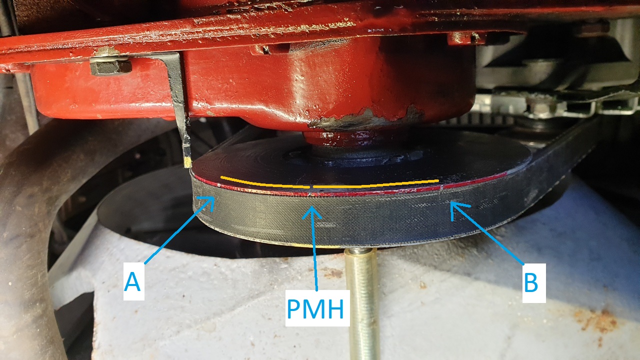 Faire un repère A sur la poulie en face d'un point fixe sur le bloc (dans mon cas le nouveau repère visser au bloc)