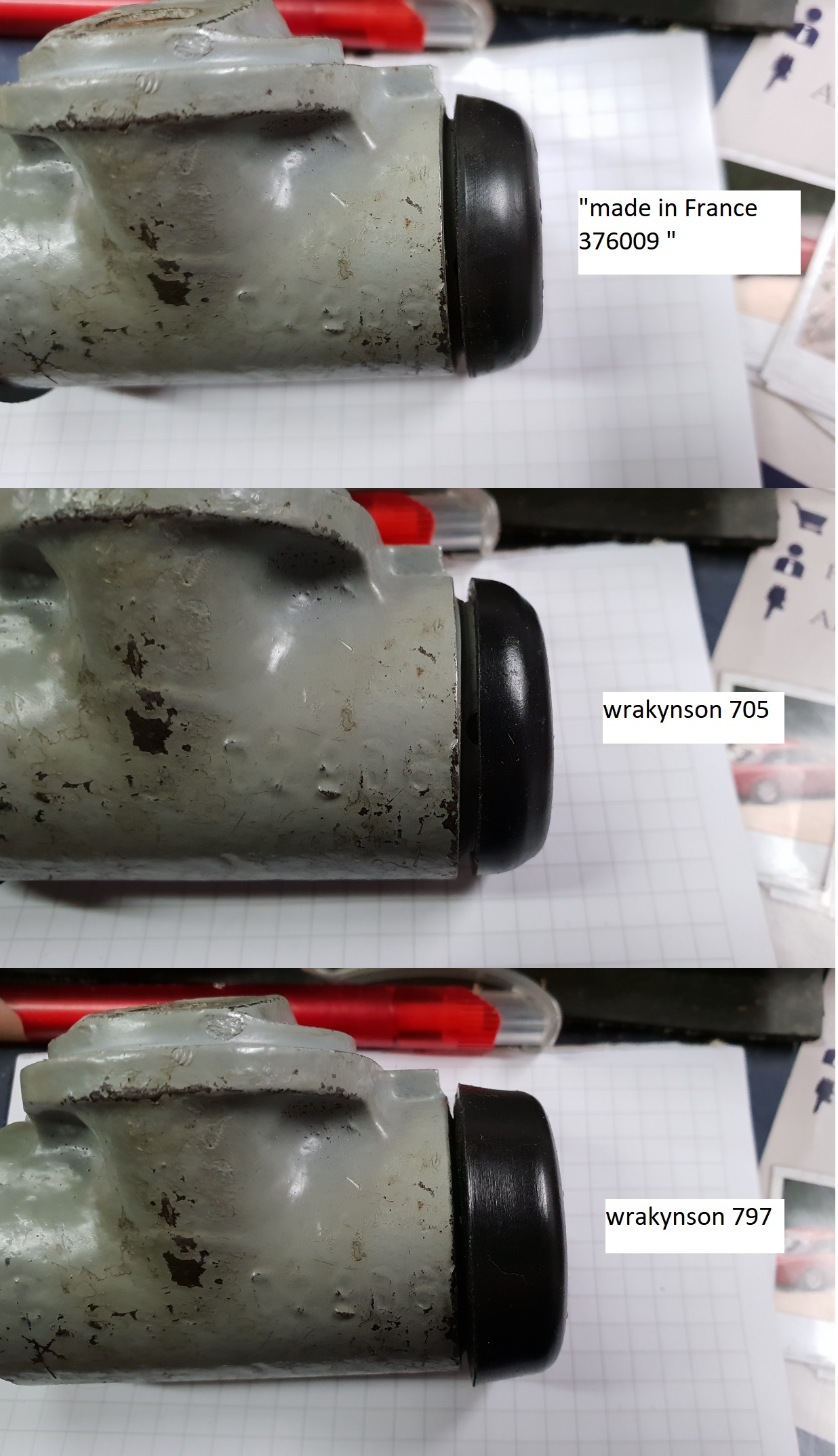 voici une comparaison des 3 montages possibles pour les cylindres arr., le cache poussière "made in France 376009" était dans un stock de pièces neuves armée belge.