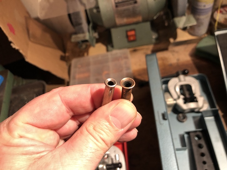 Le E et le F, on recrée un joint cuivre écrasable alors c'est tout de suite étanche et sans serrer comme une brute. On déforme la matiére dans le cone. Nuance!