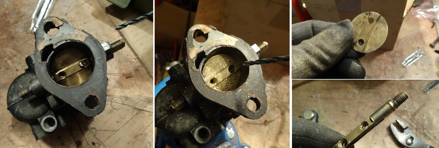 Chaque fois que je démonte un axe, il y'a au moins une vis qui foire. Je suis habitué. Un coup de foret et tout rentre dans l'ordre. L'axe a fait son temps. Il sera remplacé par une refrabication à Ø8,5mm. Comme j'ai l'alésoire qui tue spécial carbu, pas de soucis!
