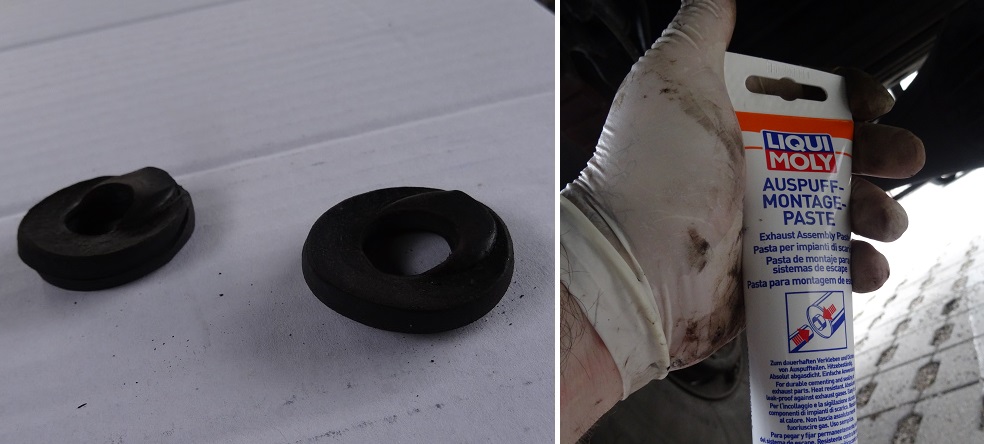 J'ai donc fait ce que je voulais faire depuis l'été dernier: installer de vrais silentblocs sur la ligne d'échappement (jusqu'à aujourd'hui, c'étaient des joints de baignoire!
