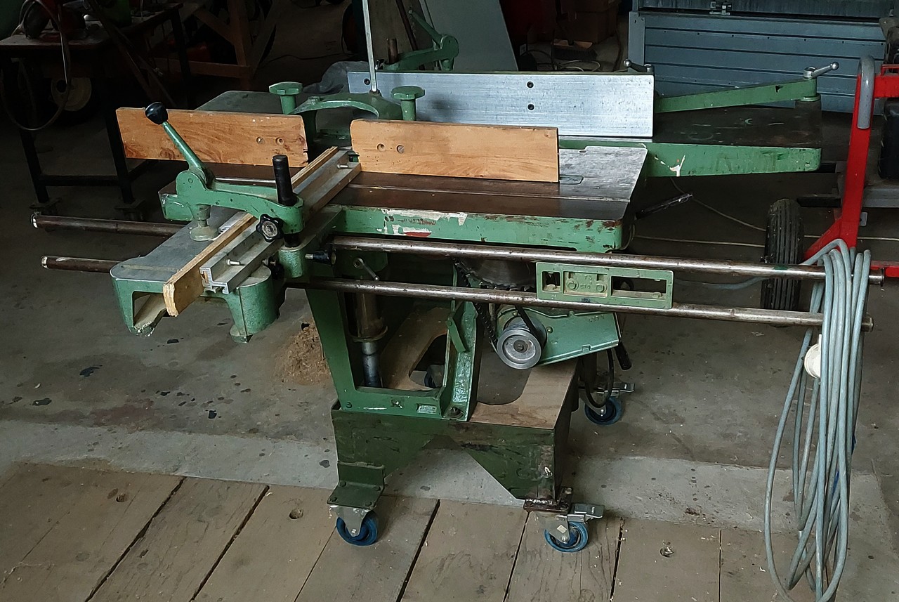 Vds combinée LUREM (raboteuse, dégauchisseuse (on a dit pas de politique sur le forum :lol: ), toupie (or not toupie), scie circulaire, mortaiseuse), en bon état. Fabrication : fin des années 70 (châssis en fonte) - 1ère main, relativement peu utilisée. 380 Volts.