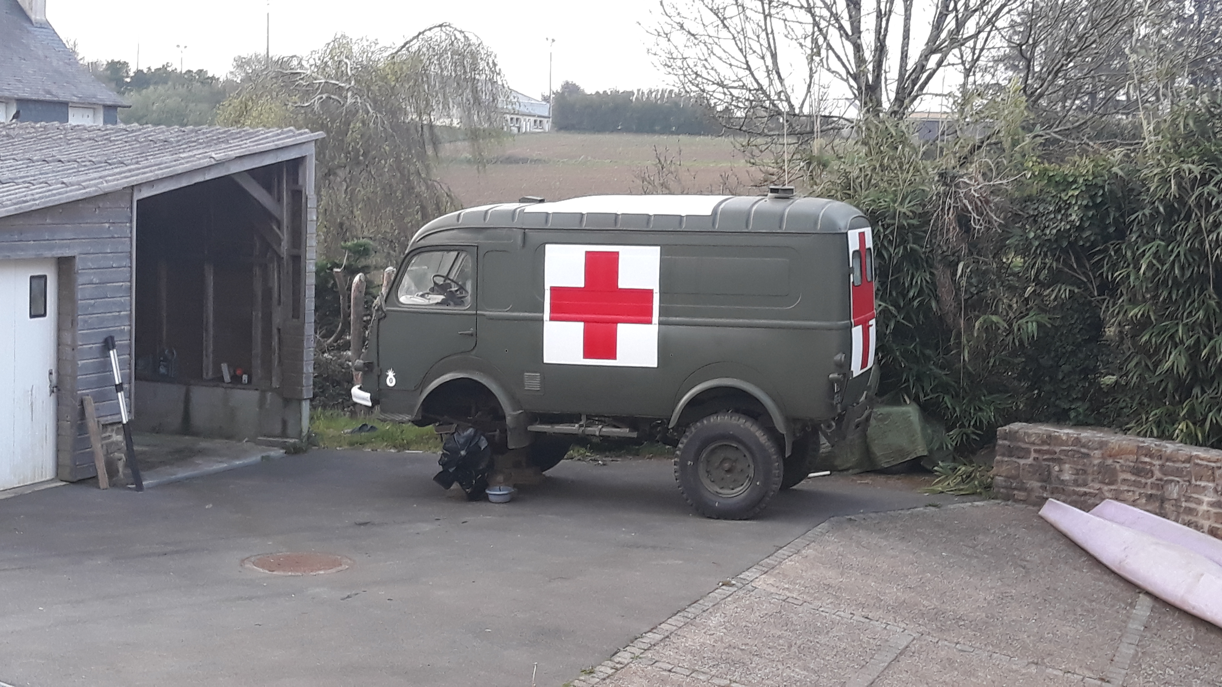 R2087N torpédo en ballade, le R2086 en cours de restauration, une ambu 4x4 et une 2CV4 !!!