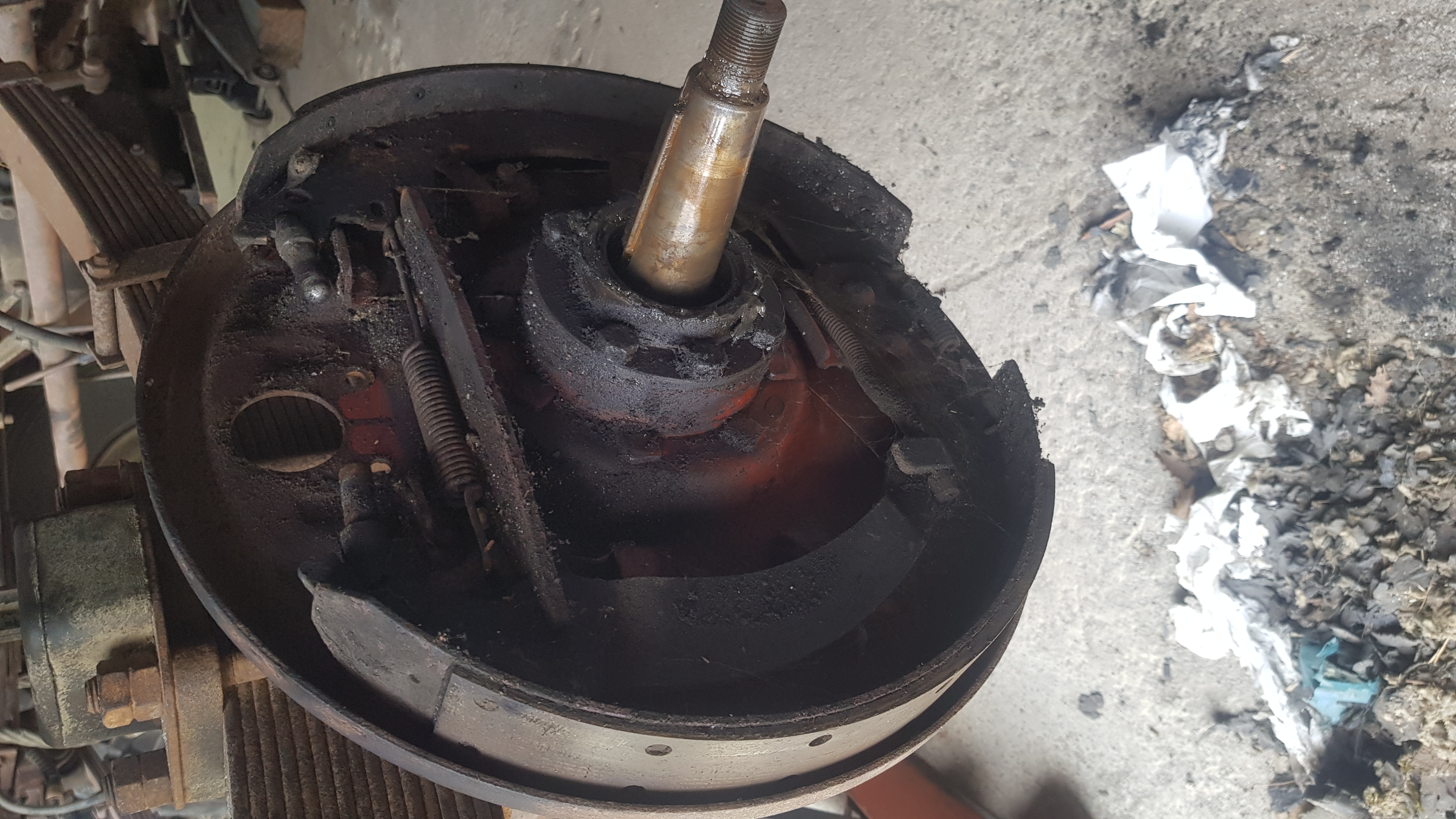 bon la suite: ai démonter les roues arrière, d'ailleur la roue ar droite était tellement serré qu'au desserrage, le bord du moyeux ou vient appuyer le plat du goujon de roue a pété.... bref.... tout ça pour decouvrir (je m'y attendait un peut