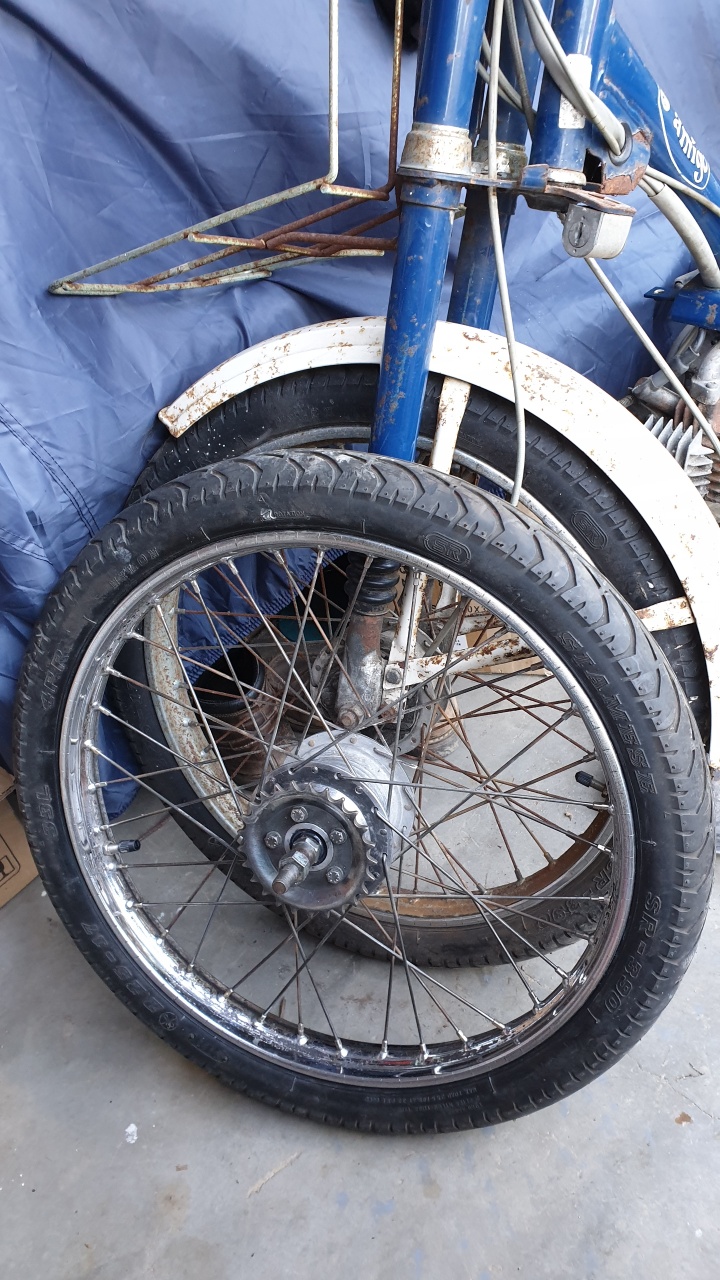aujourd'hui, j'ai réparé la seule panne connue , la roue arrière crevée :lol: