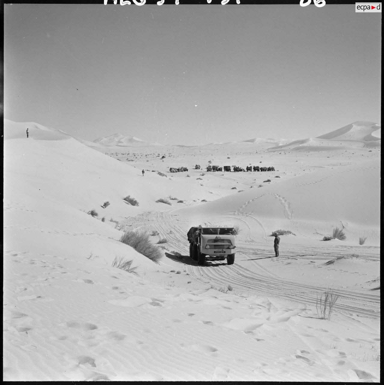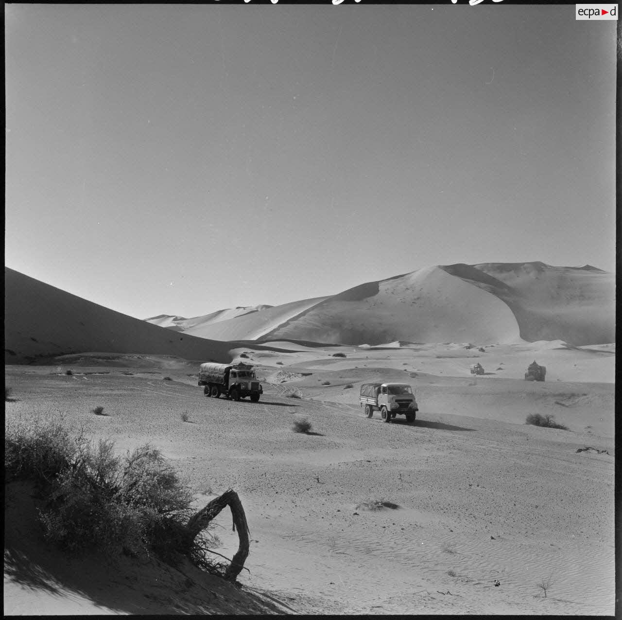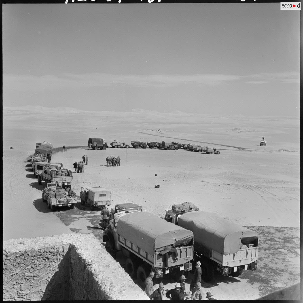 Une colonne de 25 véhicules lourds et légers traverse pour la première fois le Grand Erg oriental par la région des plus grandes dunes (Algérie).Description du reportagePartie de Fort Lallemand le 12 mars 1959 au soir, une colonne de 25 véhicules lourds et légers traverse pour la première fois le Grand Erg oriental par la région des plus grandes dunes et arrive le 18 mars 1959 au soir à Fort Thiriet, petit poste frontalier à quelques kilomètres de Ghadames.