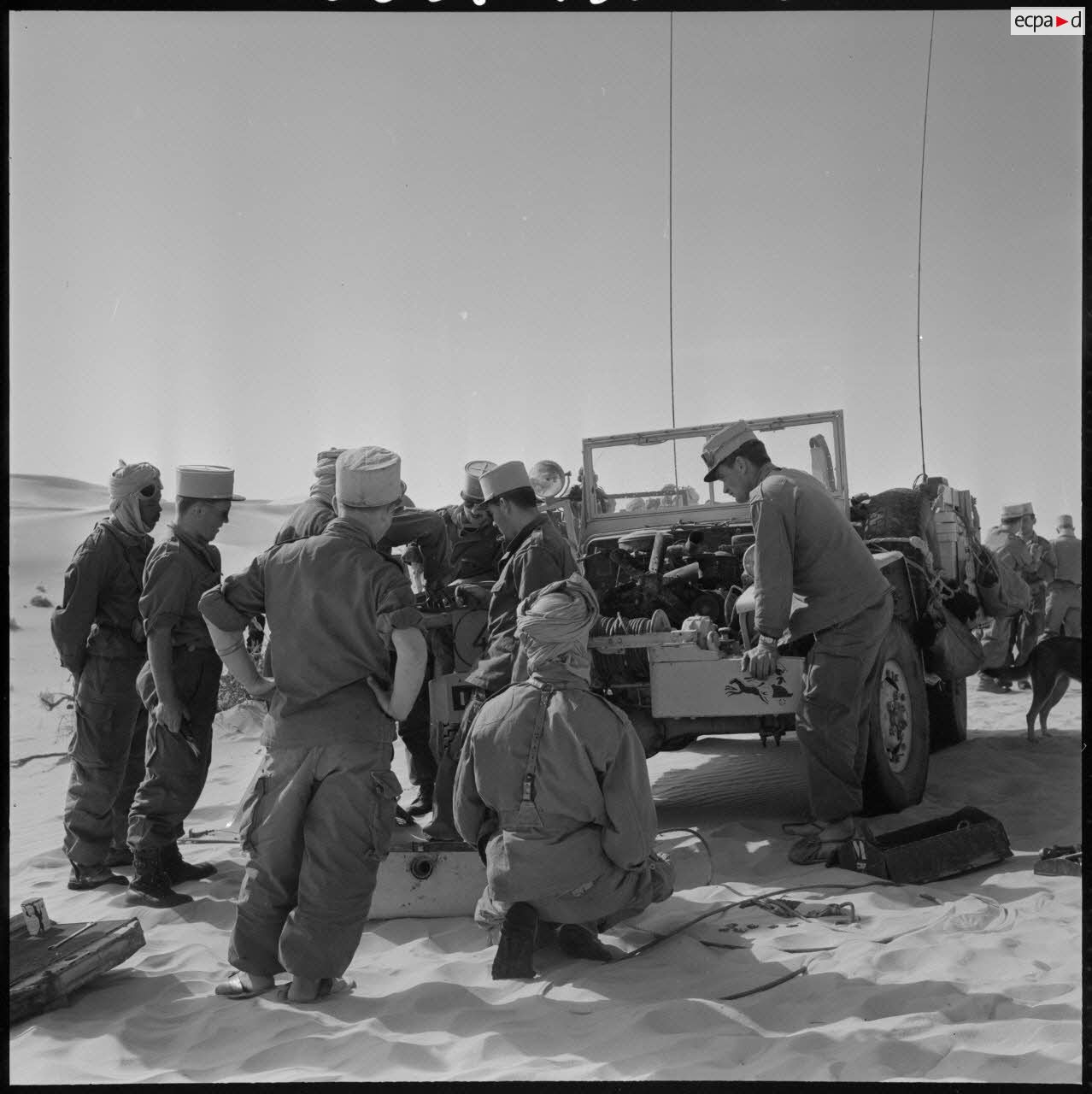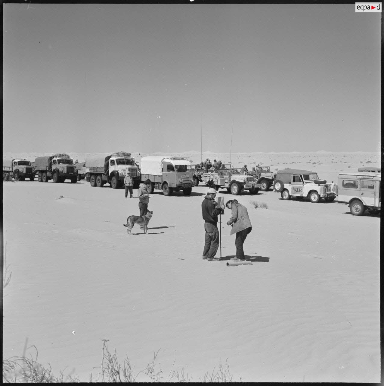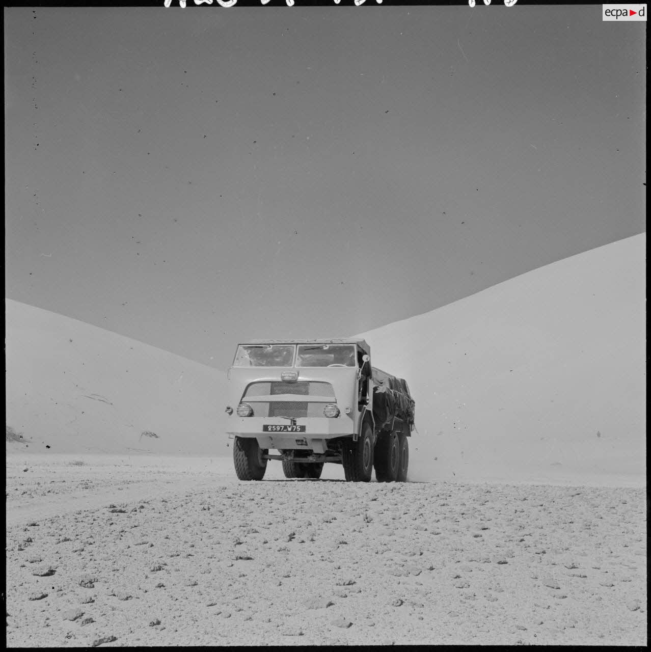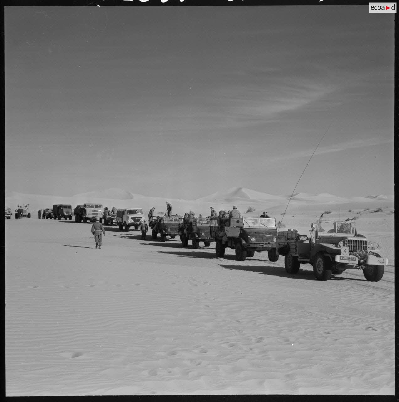 Une colonne de 25 véhicules lourds et légers traverse pour la première fois le Grand Erg oriental par la région des plus grandes dunes (Algérie).Description du reportagePartie de Fort Lallemand le 12 mars 1959 au soir, une colonne de 25 véhicules lourds et légers traverse pour la première fois le Grand Erg oriental par la région des plus grandes dunes et arrive le 18 mars 1959 au soir à Fort Thiriet, petit poste frontalier à quelques kilomètres de Ghadames.
