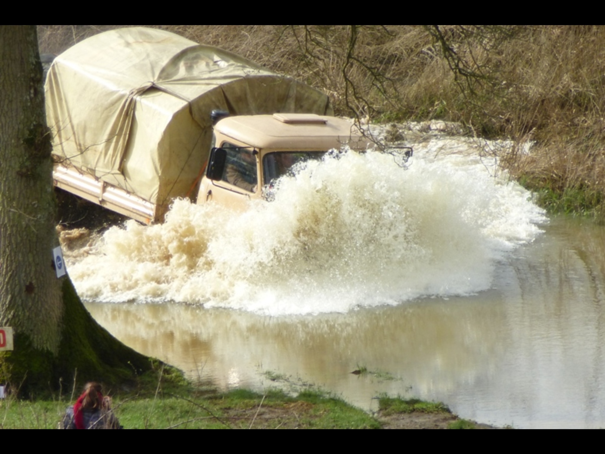 C'est du David Hamilton ces camions qui se baignent en pleine nature? Impressionnant mais moi, des fois, je roule dans des flaques, hein! |