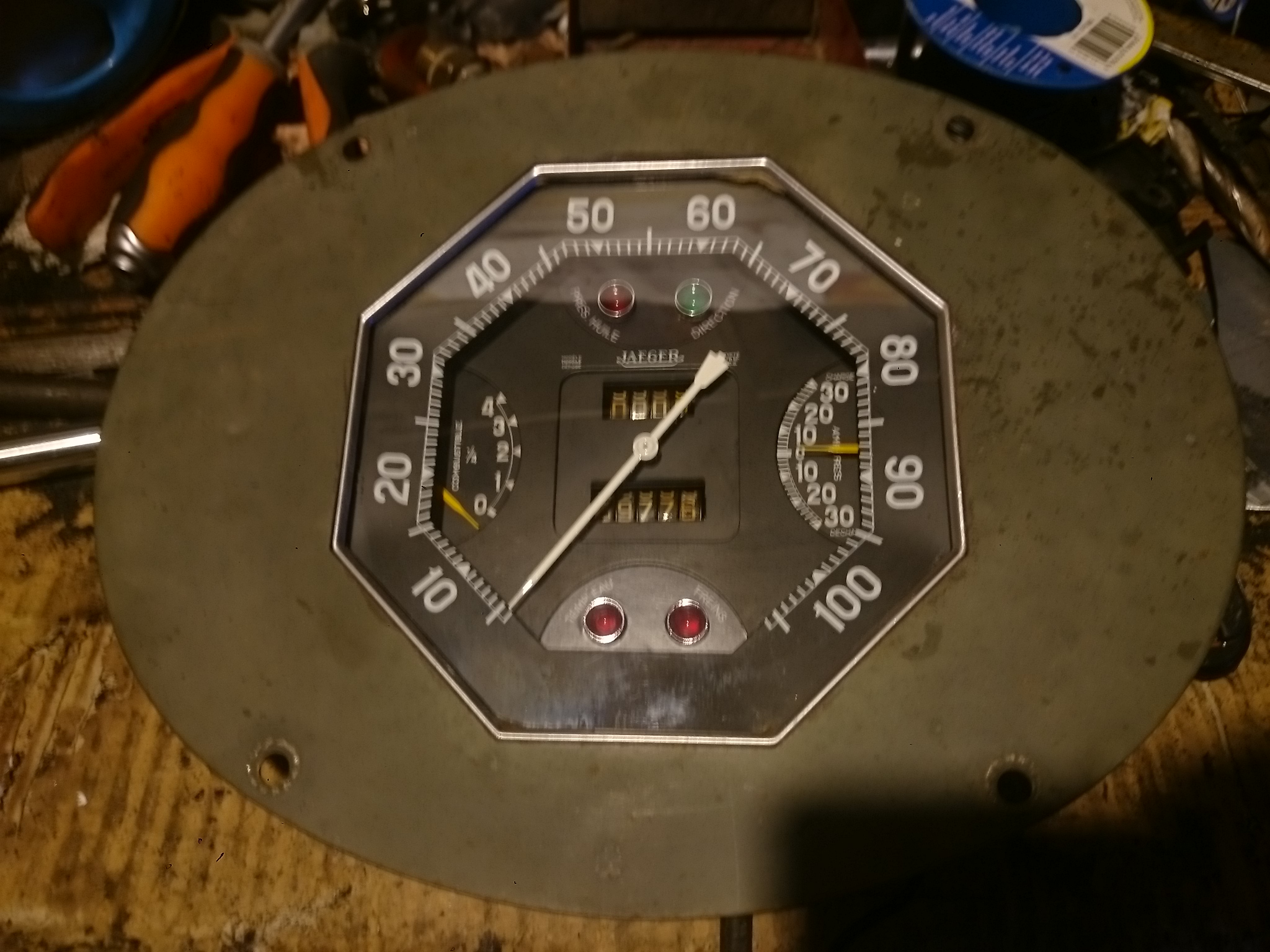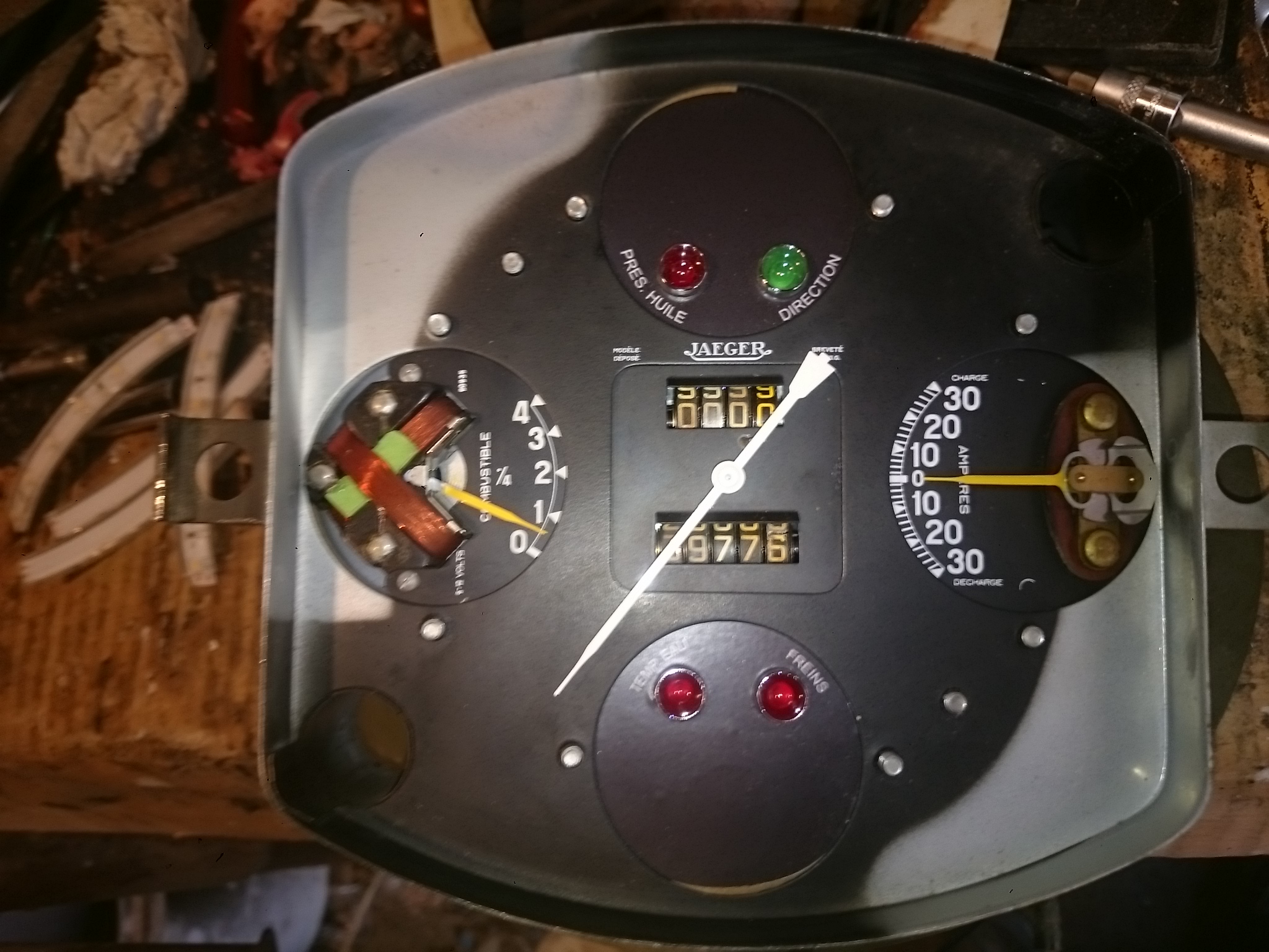 Pour cela je me suis basé sur un compteur de R2086 (enfin il me semble, car c'est un donneur d’organe DCD a coté de mon ambulance) dans le haut du compteur il y avait deux voyants, la direction et le pression d’huile, voir ce dessous.