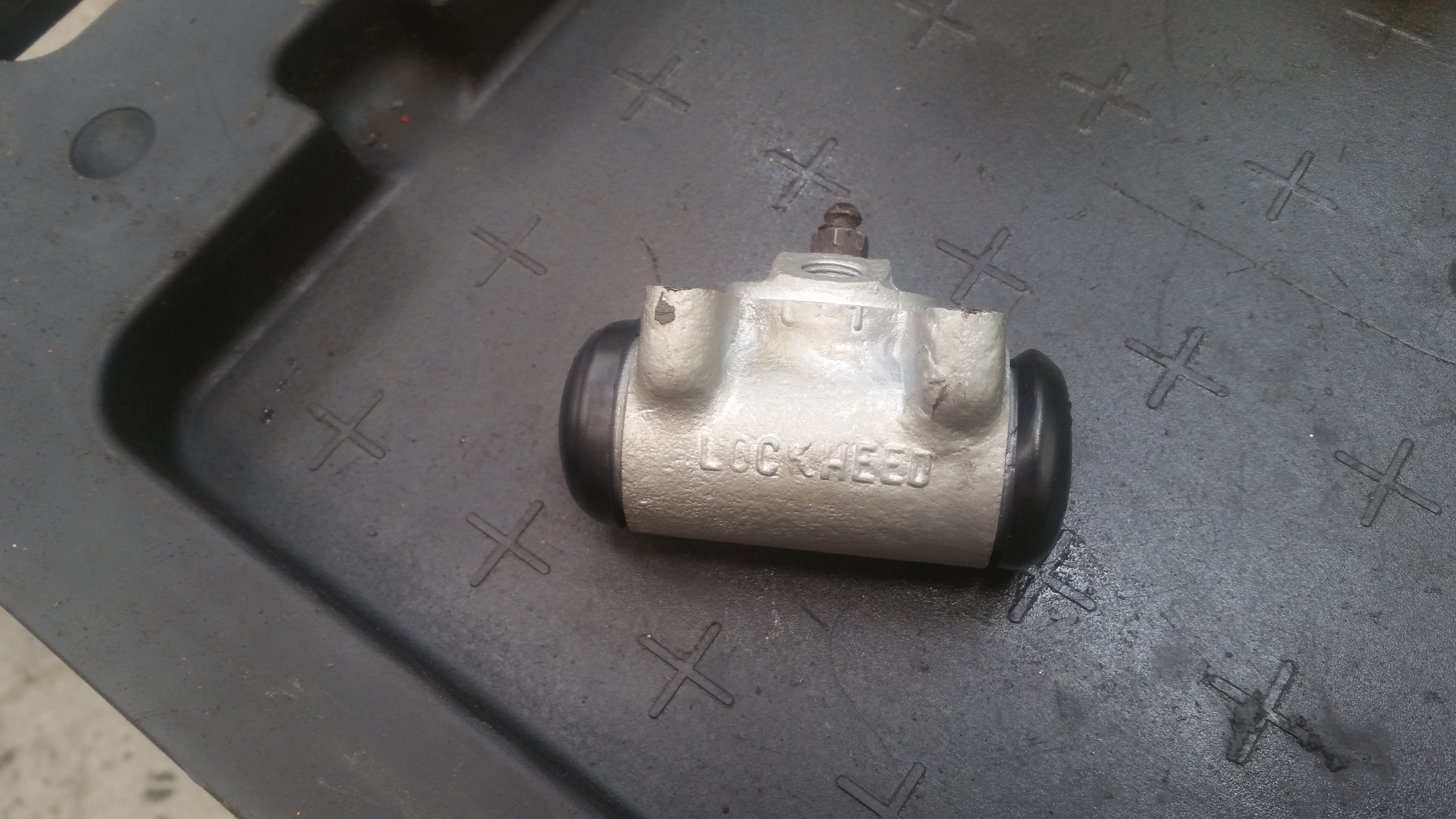 Comme je le prévoyais, je vais pouvoir commander (je vais en prendre de suite 4) les kits de réparation cylindre. Cache poussière en super état mais cylindre fatigué. Tellement en bon état qu'il rempli presque entièrement sont rôle d'étanchéité. C'est luiqui retenait le liquide de frein...