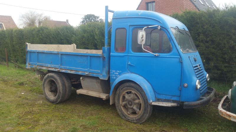 Ce petit R2245 du 4 Mars 1964, équipé d'une benne basculante hydraulique, installée à sa livraison par les Bennes Manjot, est non pas à 100% dans son habit de premier jour, mais relativement propre, tournant, avec beaucoup de documents d'époque (Registre d'entretien, manuel Conduite et Entretien, certificat d'immatriculation, Barré Rouge) mais aussi des accessoires (tel que le cric, manivelle, ect...)
