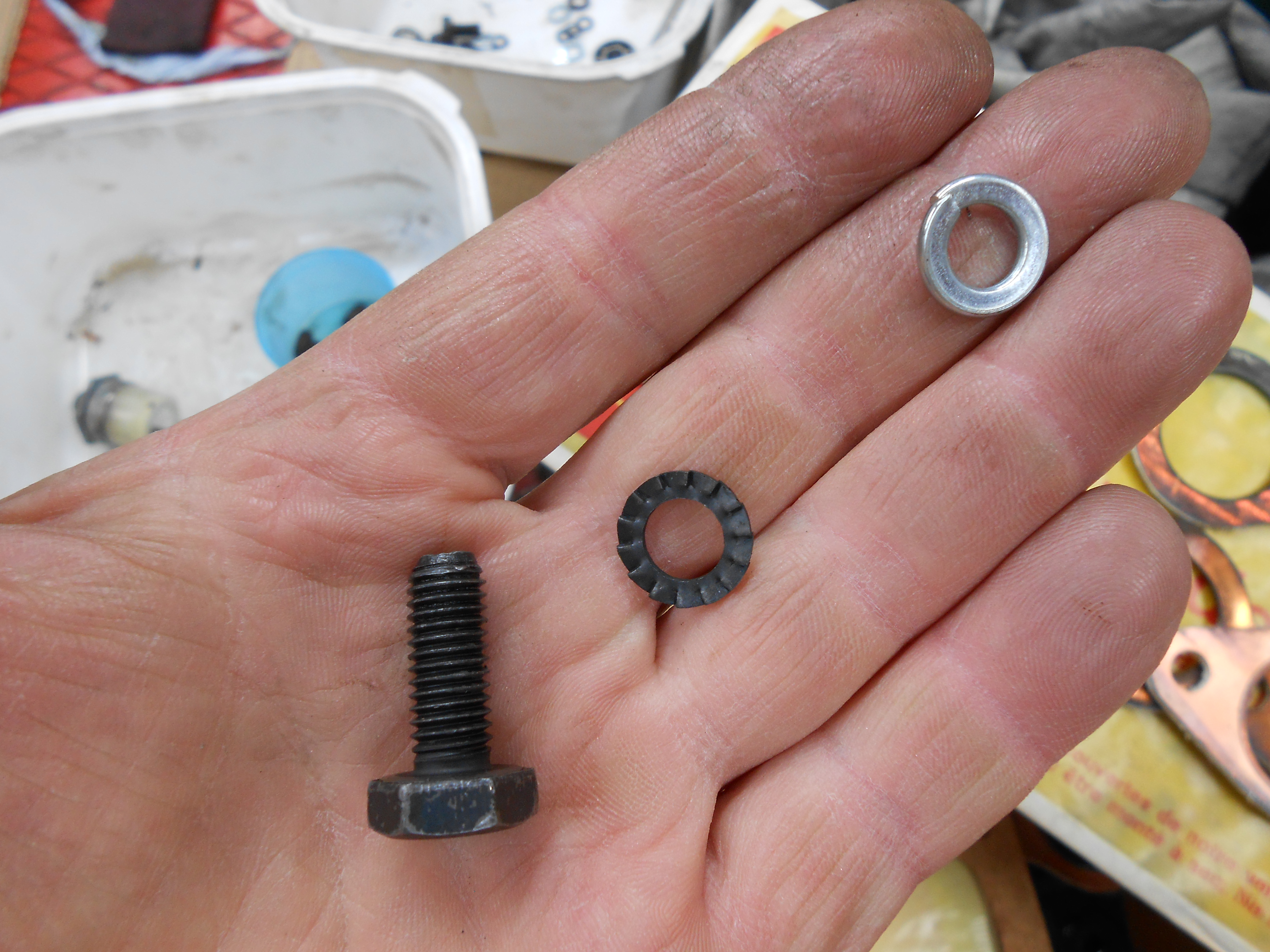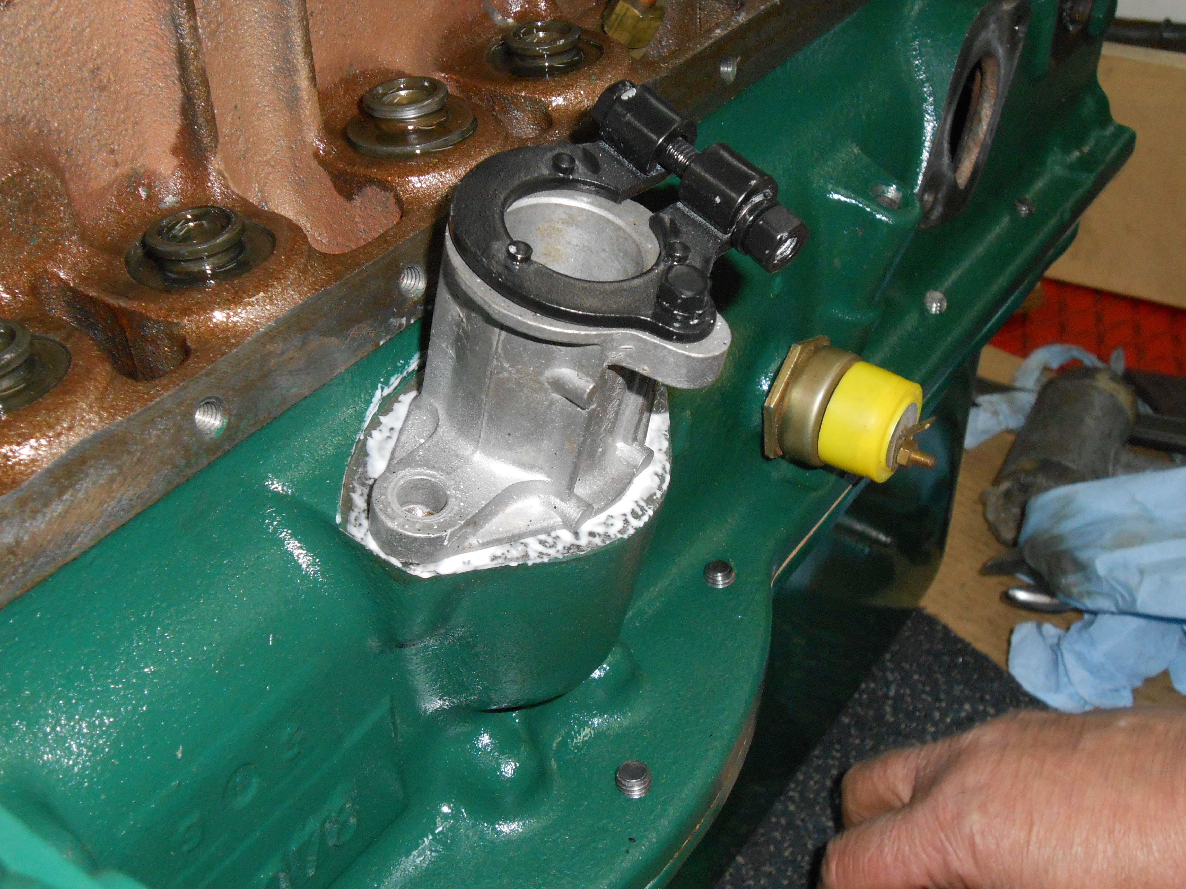 LA POMPE ESSENCEOn monte le joint à la pâte (ici, du caf4), aucune difficulté. On a juste remplacé les rondelles éventails qui blessent le zamac du corps par des grower.