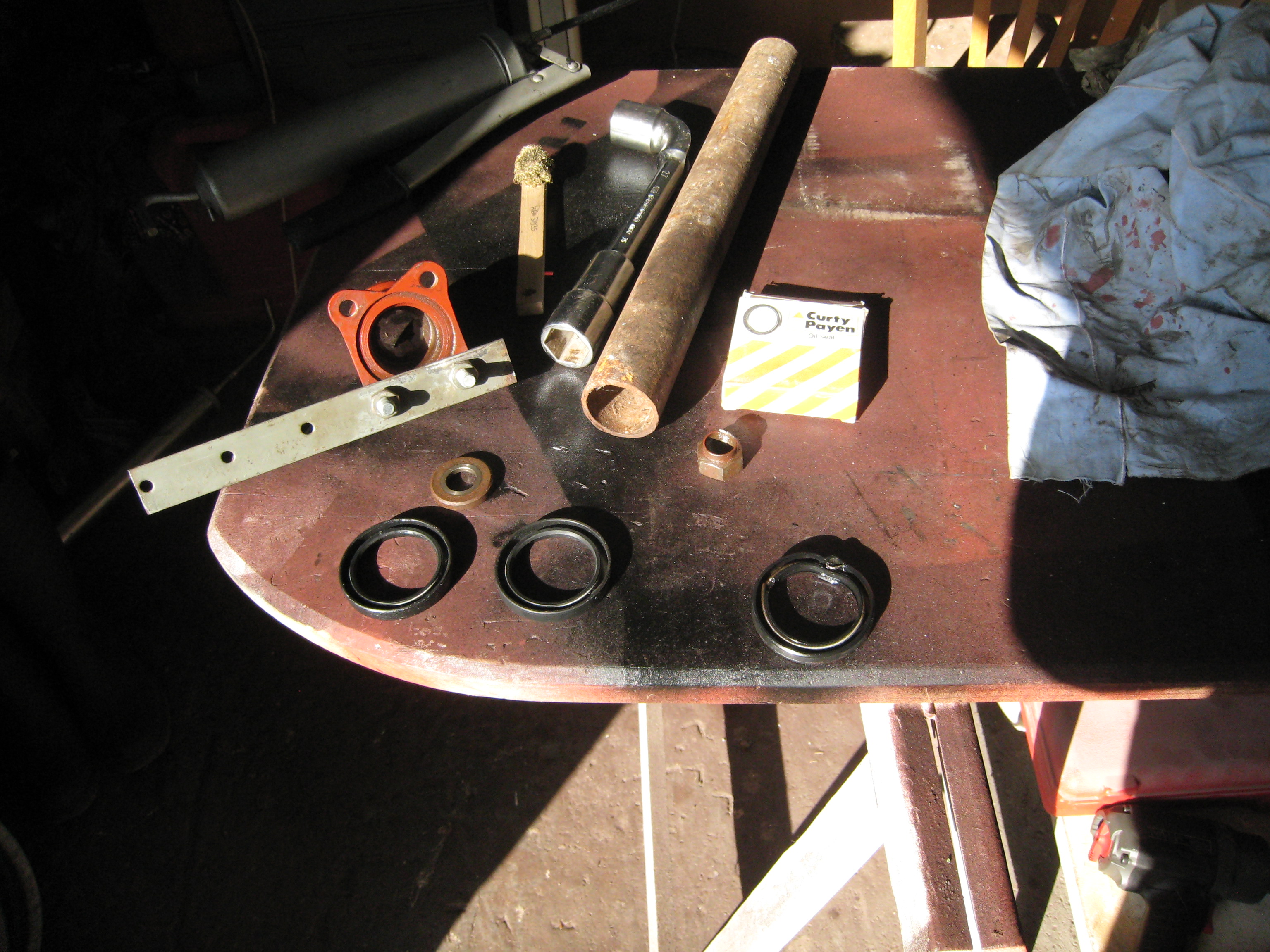 Retour en fin de matinée et je commence à enlever le joint spi, rechercher dans mon L.R. ce que j'avais.