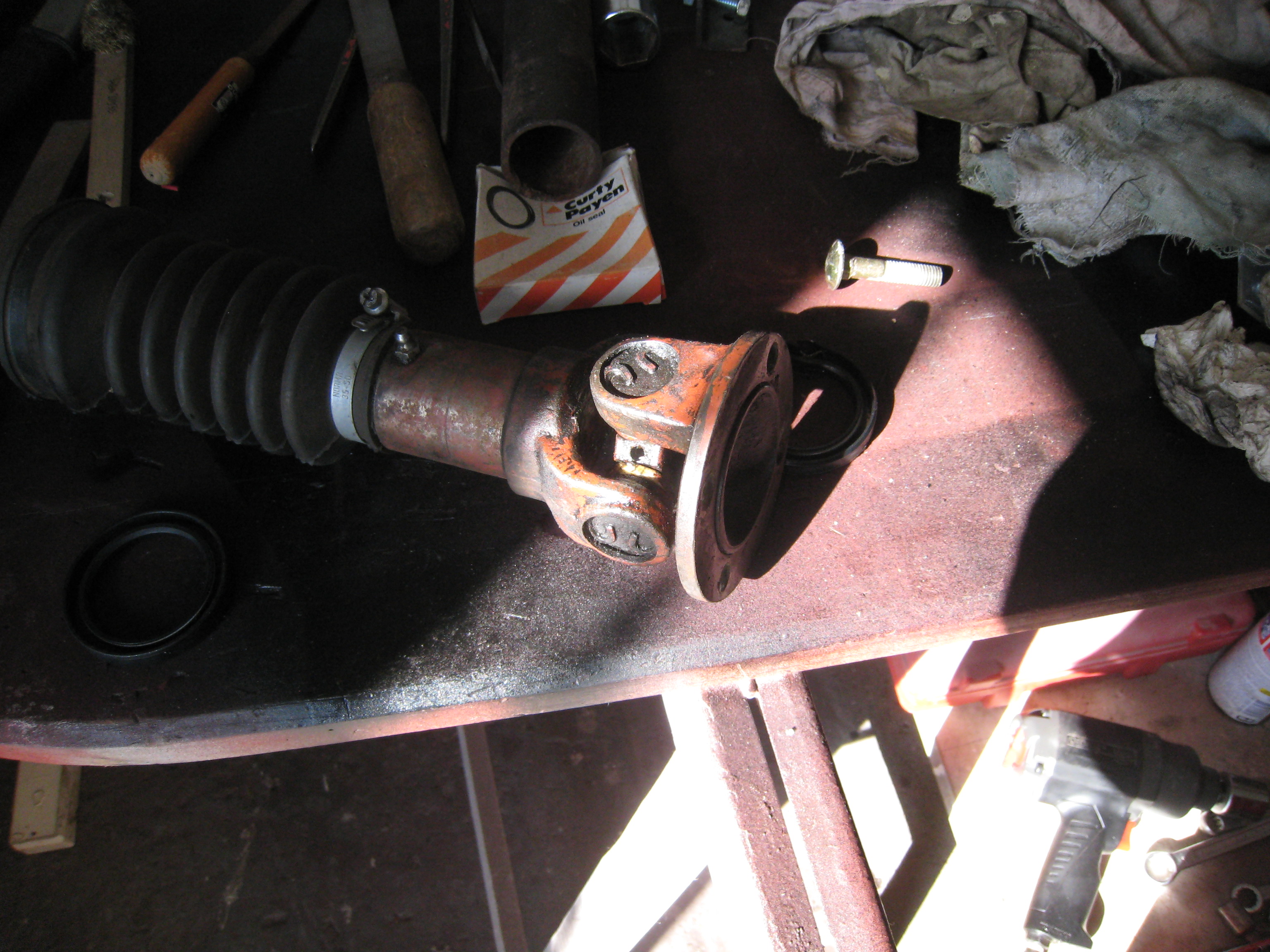 Pose du joint spi, réalignement des cardans graissés et mise en place de la transmission train AV!