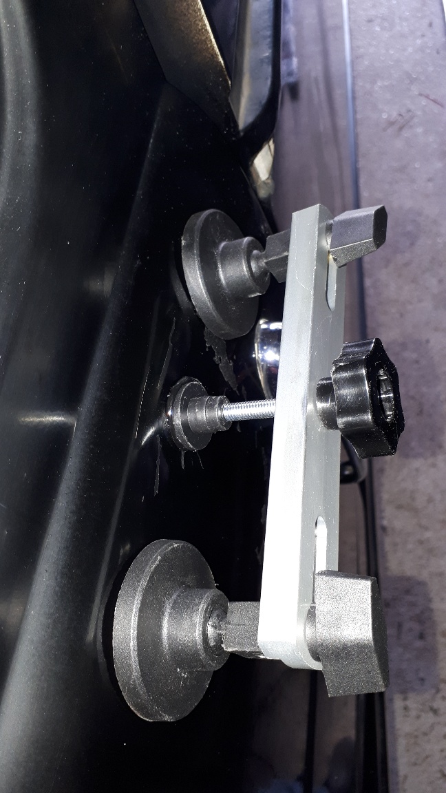 Avant l'achat du kit, j'avais tenté la ventouse (dont on voit les traces sur les premières photos) : impossible à cause du pli d'emboutissage...