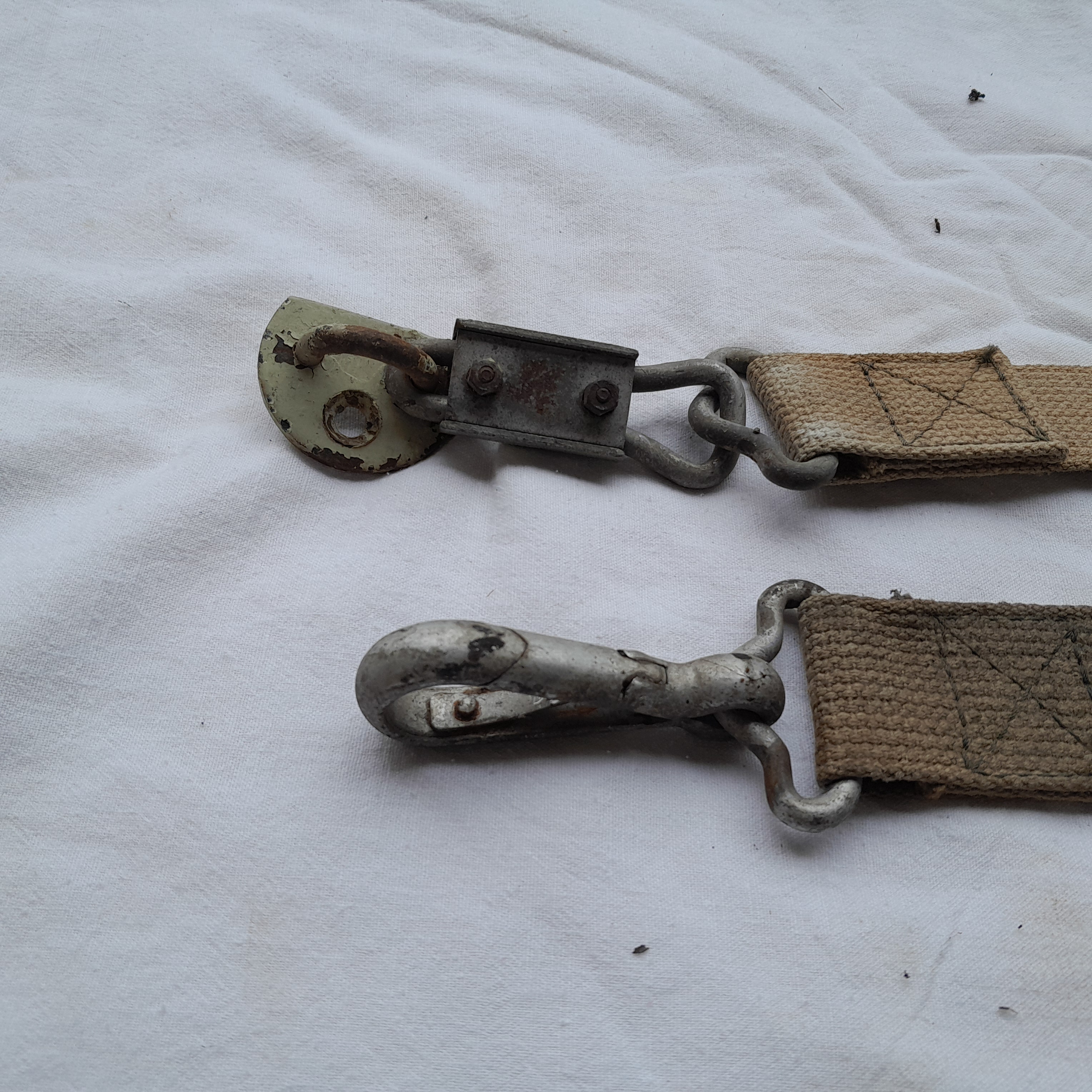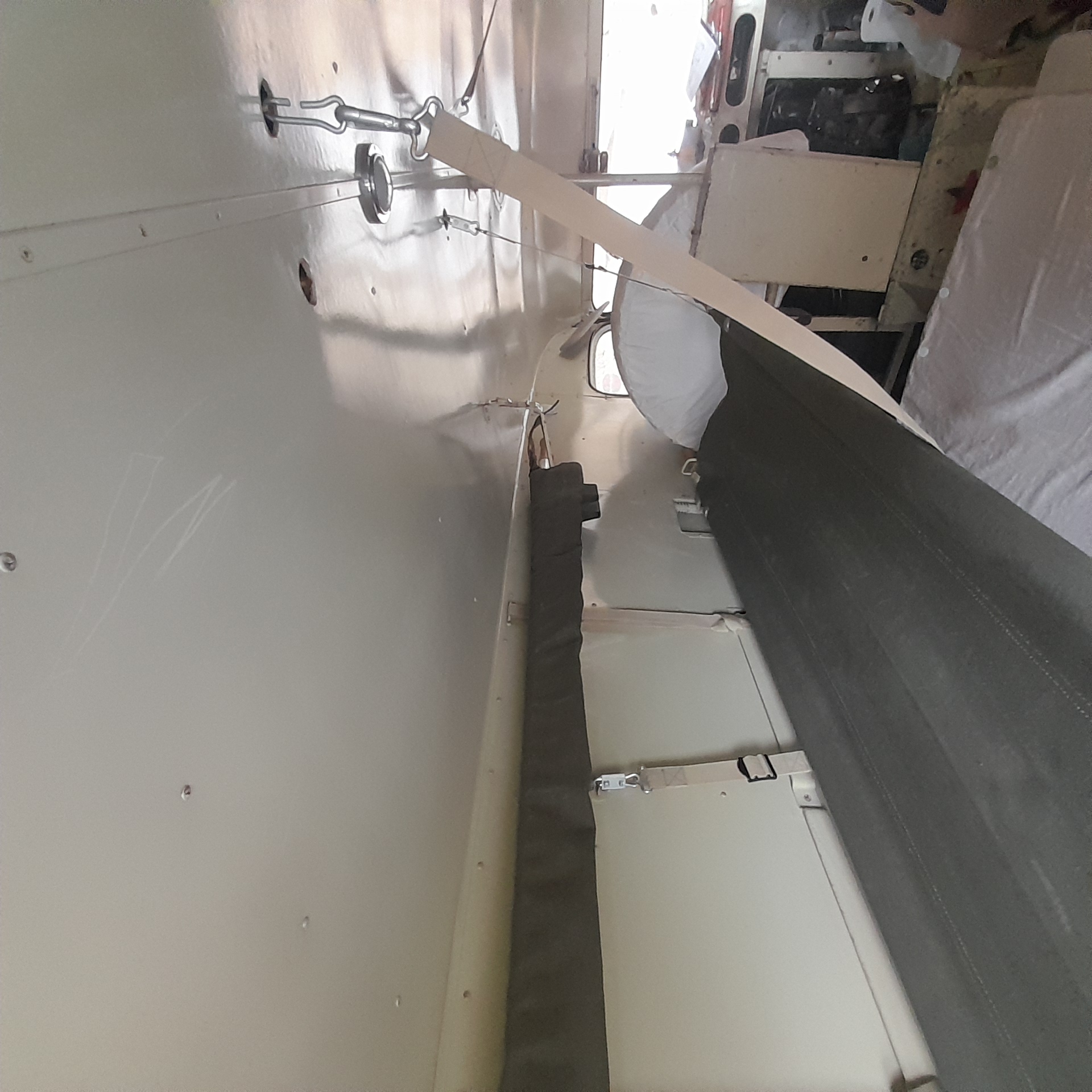 Pour éviter de basculer lors du transport, l'Armée a prévu une sangle ventrale de chaque côté des brancards suspendus.